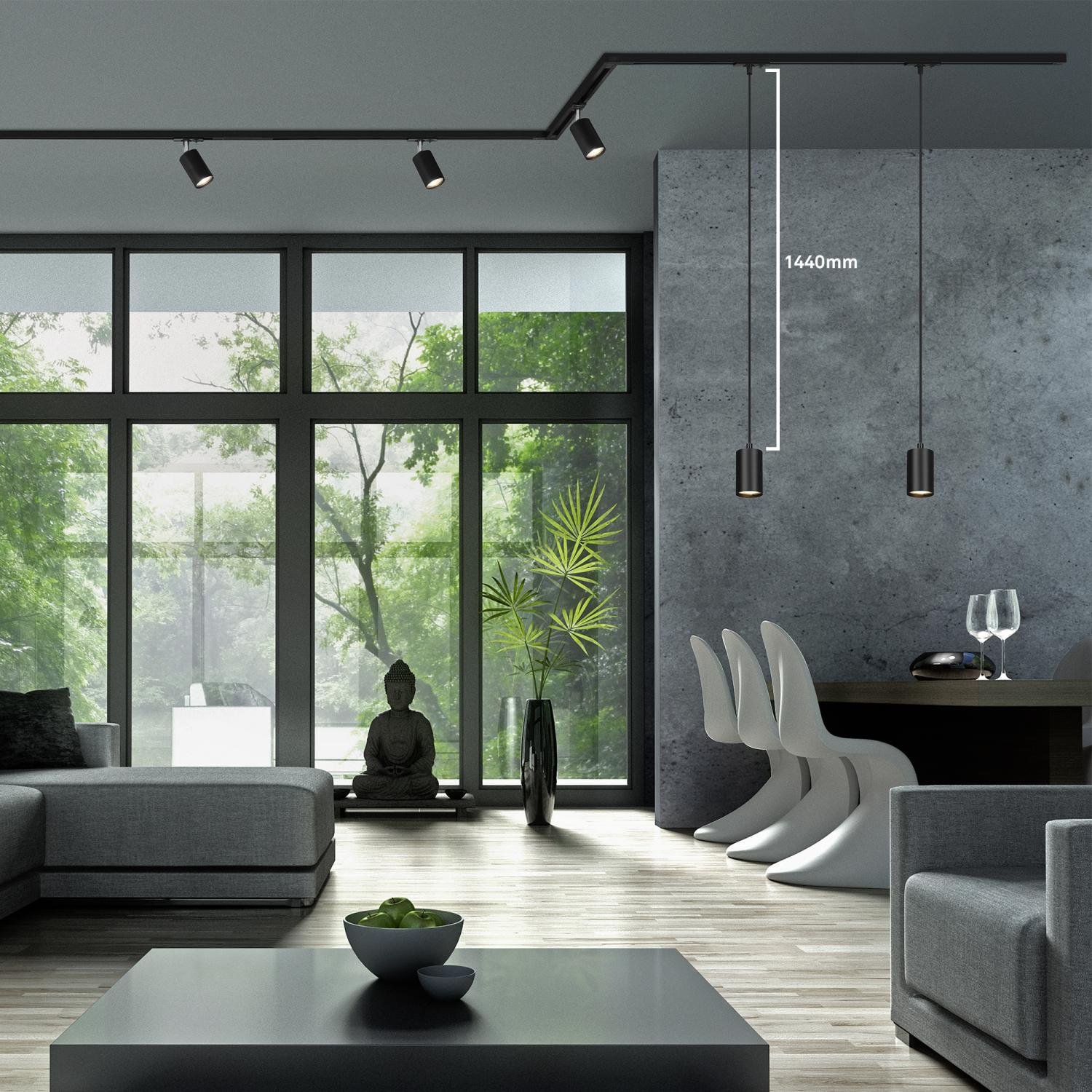 1-fázový lištový systém BRILO – 6x spot, 2x závěsná svítidla, 3 rohová spojka, černá