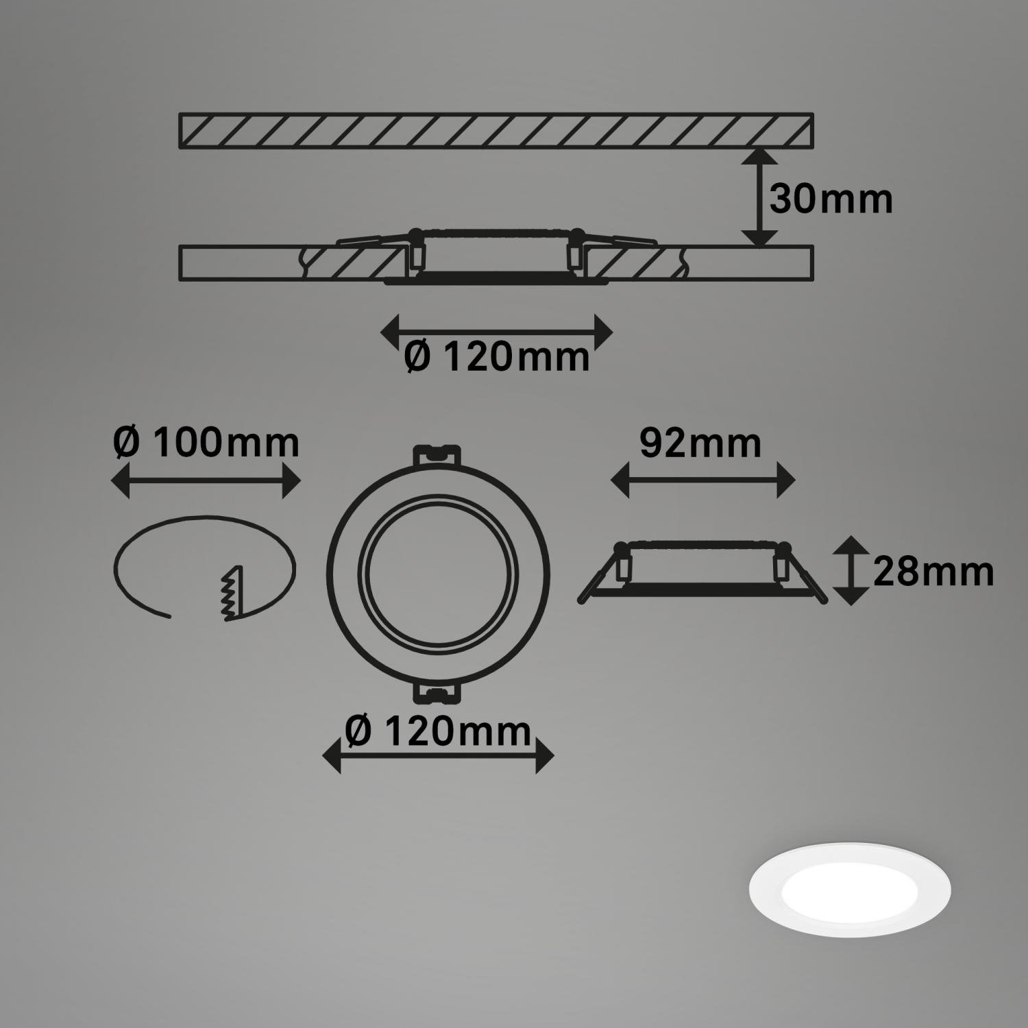 Designová sada 3 LED vestavných bodových svítidel BRILONER Ø120 mm, ploché, 6W, 230V, neutrální bílá
