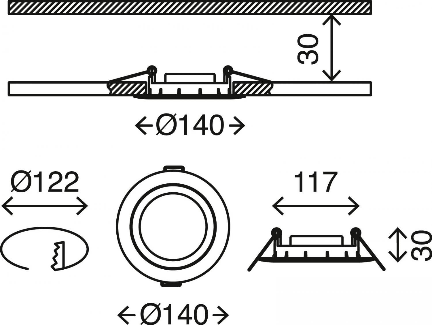 - Kompaktní velikost: Průměr 14 cm, výška 3 cm, montážní otvor 122 mm – ideální pro novostavby i rekonstrukce.