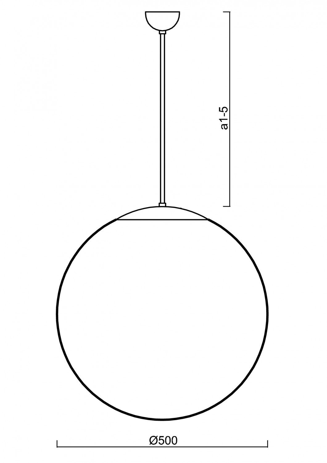 Kulaté závěsné svítidlo s průměrem stínidla Ø500 mm. Svítidlo se skládá z tyčového závěsu a ručně vyráběného třívrstvého skleněného stínidla TRIPLEX OPAL s matovaným povrchem. Stínidlo je uchyceno ocelovým držákem. Svítidlo je vhodné do interiéru.
