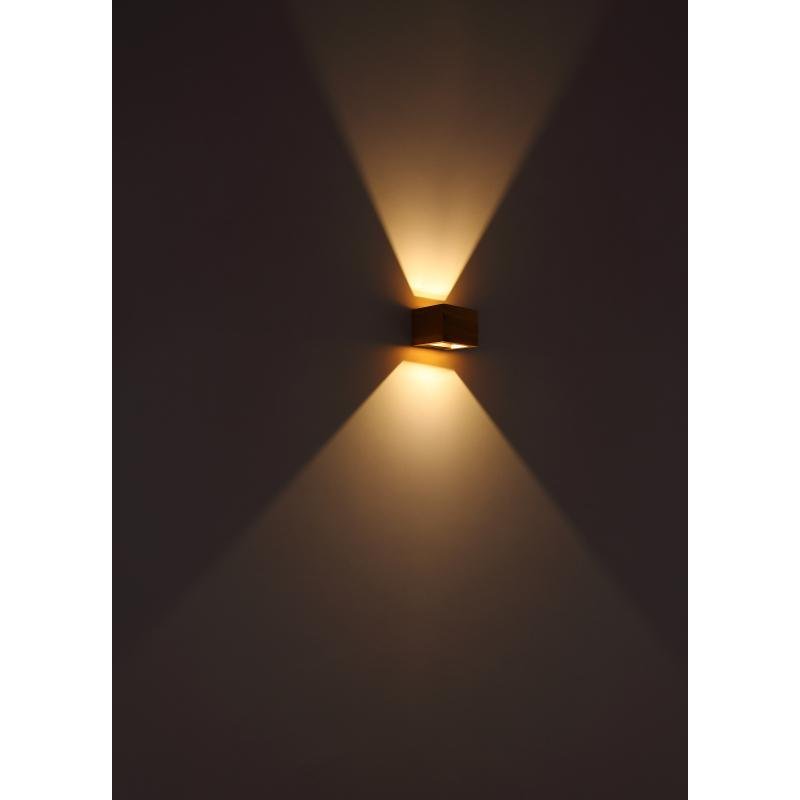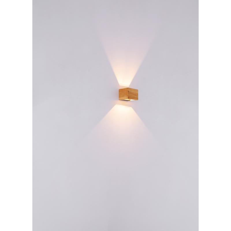Nástěnné svítidlo ze série Alina je velmi moderní se vzhledem dřeva. Dřevěná kostka vysoká 9,5cm a široká 13,5cm s přesahem 11,5cm má uvnitř integrovaný LED zdroj, který poskytuje 3000 Kelvinů.