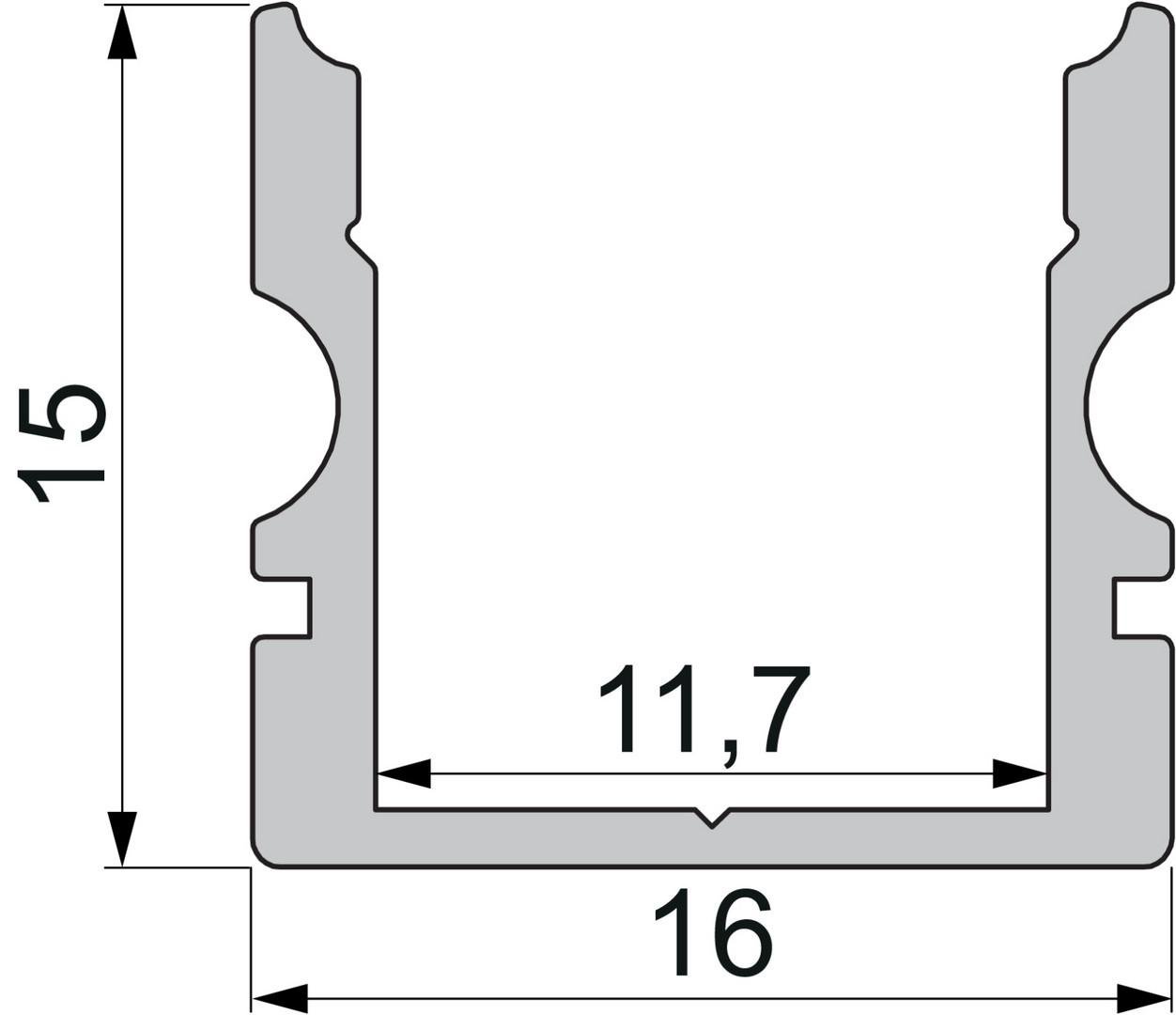 Reprofil, AU-02-10 vysoký U-profil pro 10 - 11,3 mm LED pásek, hliník, matná stříbrná, eloxovaný, délka: 1000 mm, šířka: 16 mm, výška: 15 mm