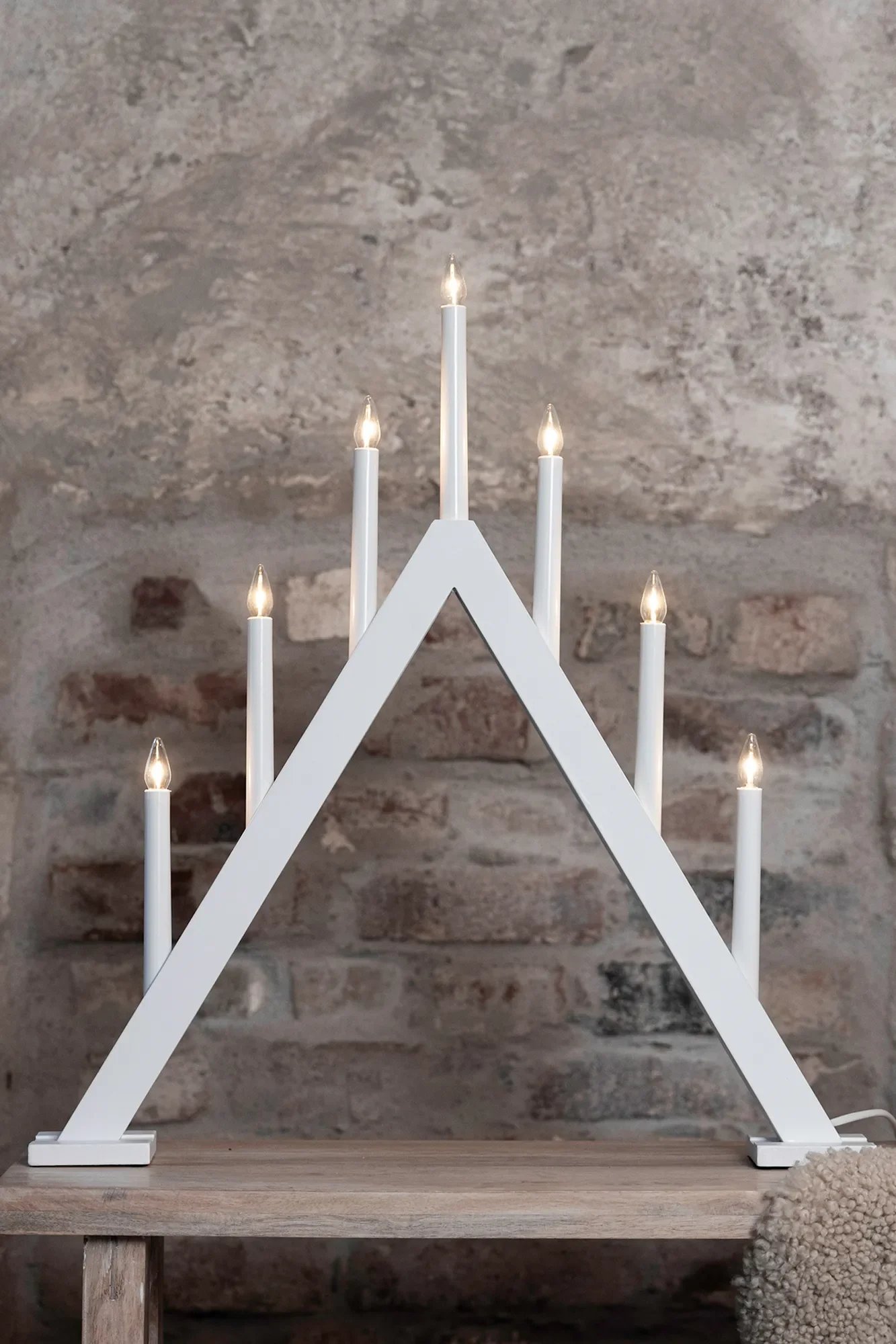 - Klasický severský design: Geometrická kompozice sedmi svíček s jasně bílým lakem vytváří ikonickou siluetu, která vynikne na parapetu i na svátečně prostřeném stole.
