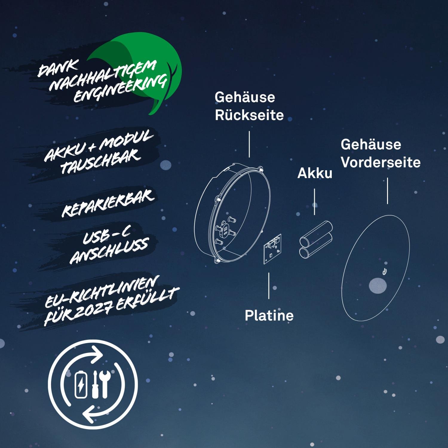 - Nabíjecí provoz s USB-C: Integrovaný akumulátor zajistí nezávislost na elektrické síti, svítidlo lze pohodlně nabíjet přes USB-C.