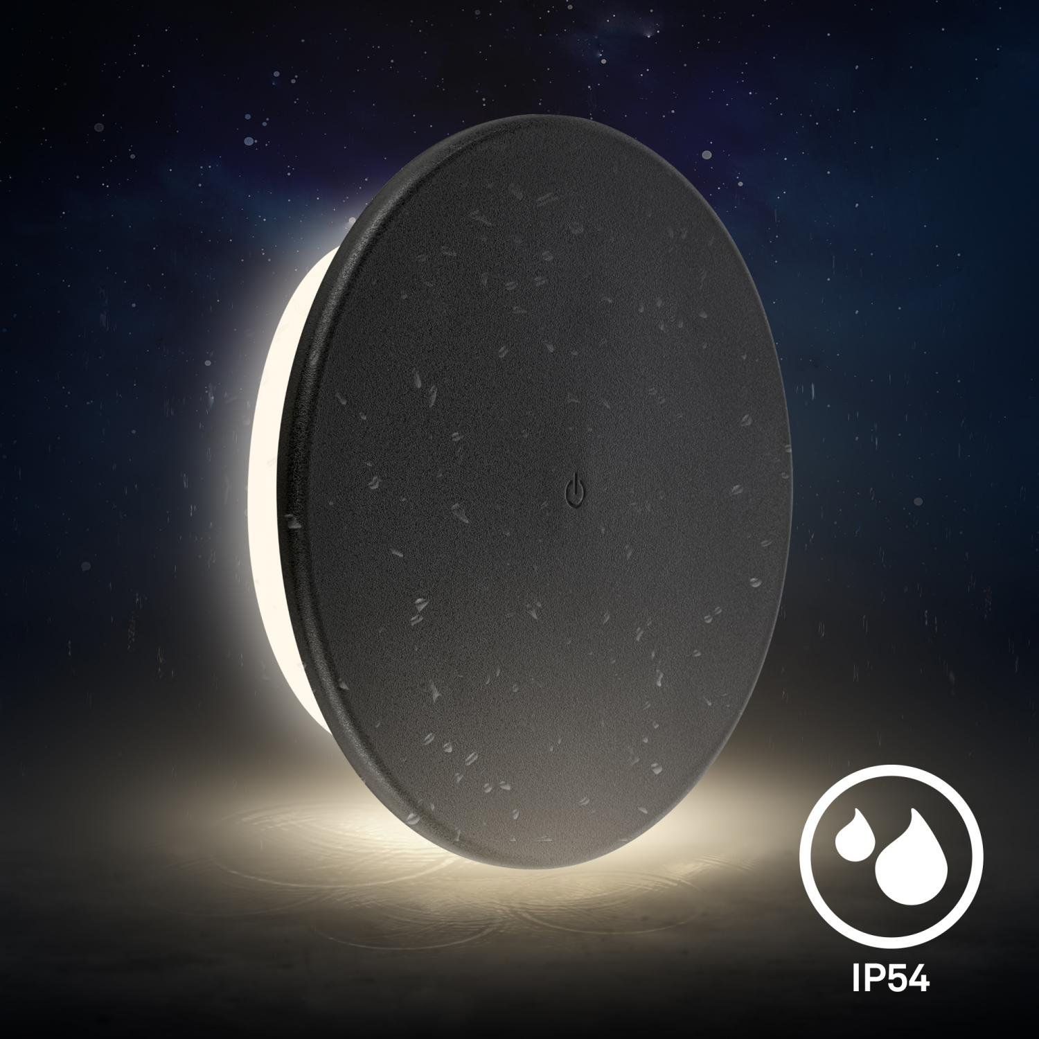 Aurora LED nástěnné svítidlo nabíjecí, IP54, stmívatelné, dotykový vypínač, černé – BRILO