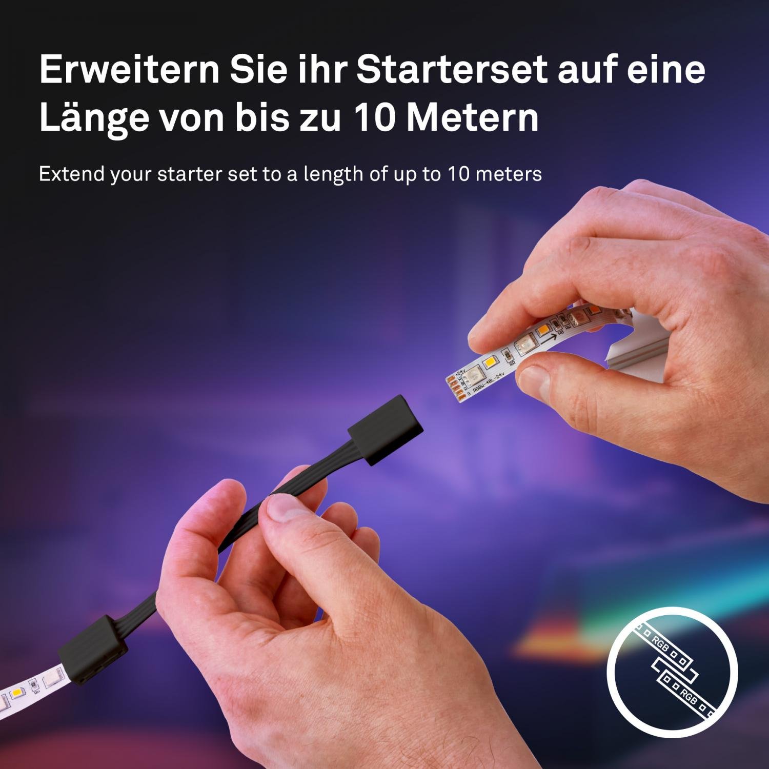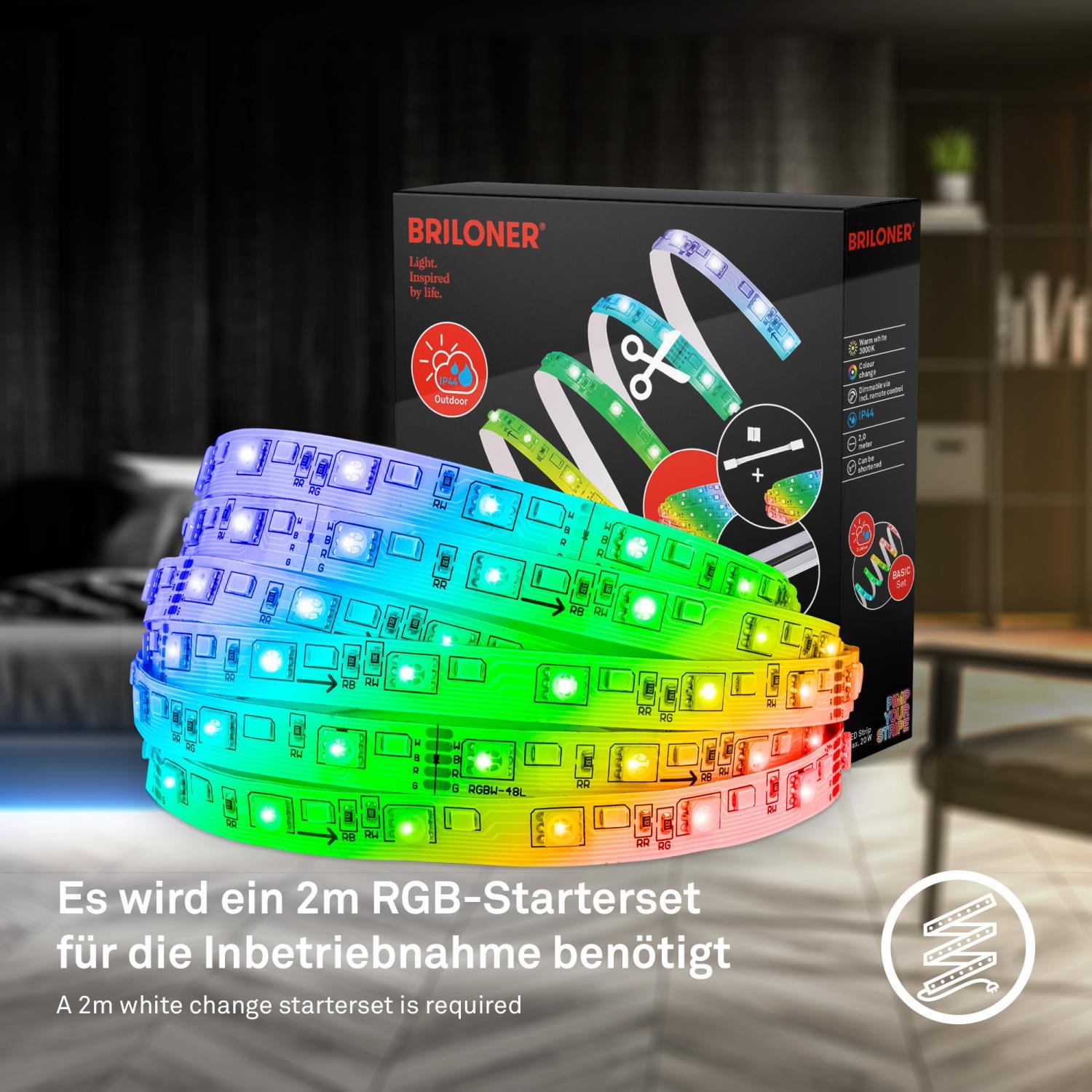 K funkčnosti prodlužovacího pásku potřebujete kompatibilní startovací sadu BRILONER (2165192 nebo 2166192), která obsahuje napájecí zdroj a řídicí jednotku.