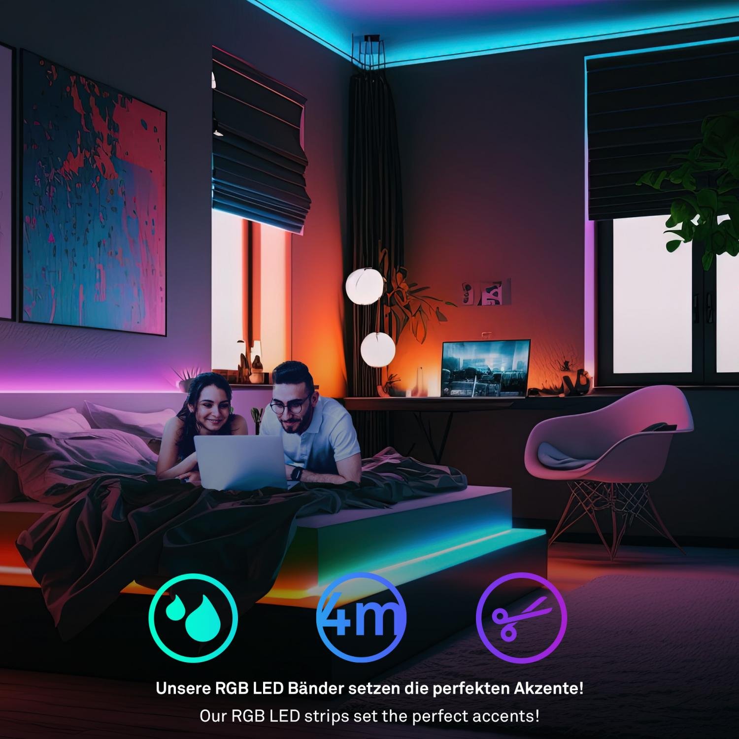 - Stmívatelné a programovatelné – Plynulé nastavení jasu, výběr barev a přednastavené programy pro každou situaci.
