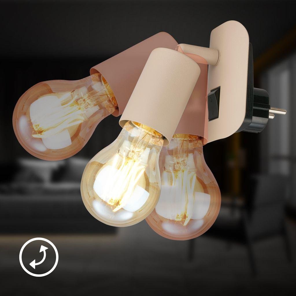 Batita svítidlo do zásuvky - s vypínačem, nastavitelné, retro, E27 patice, béžová - BRILONER