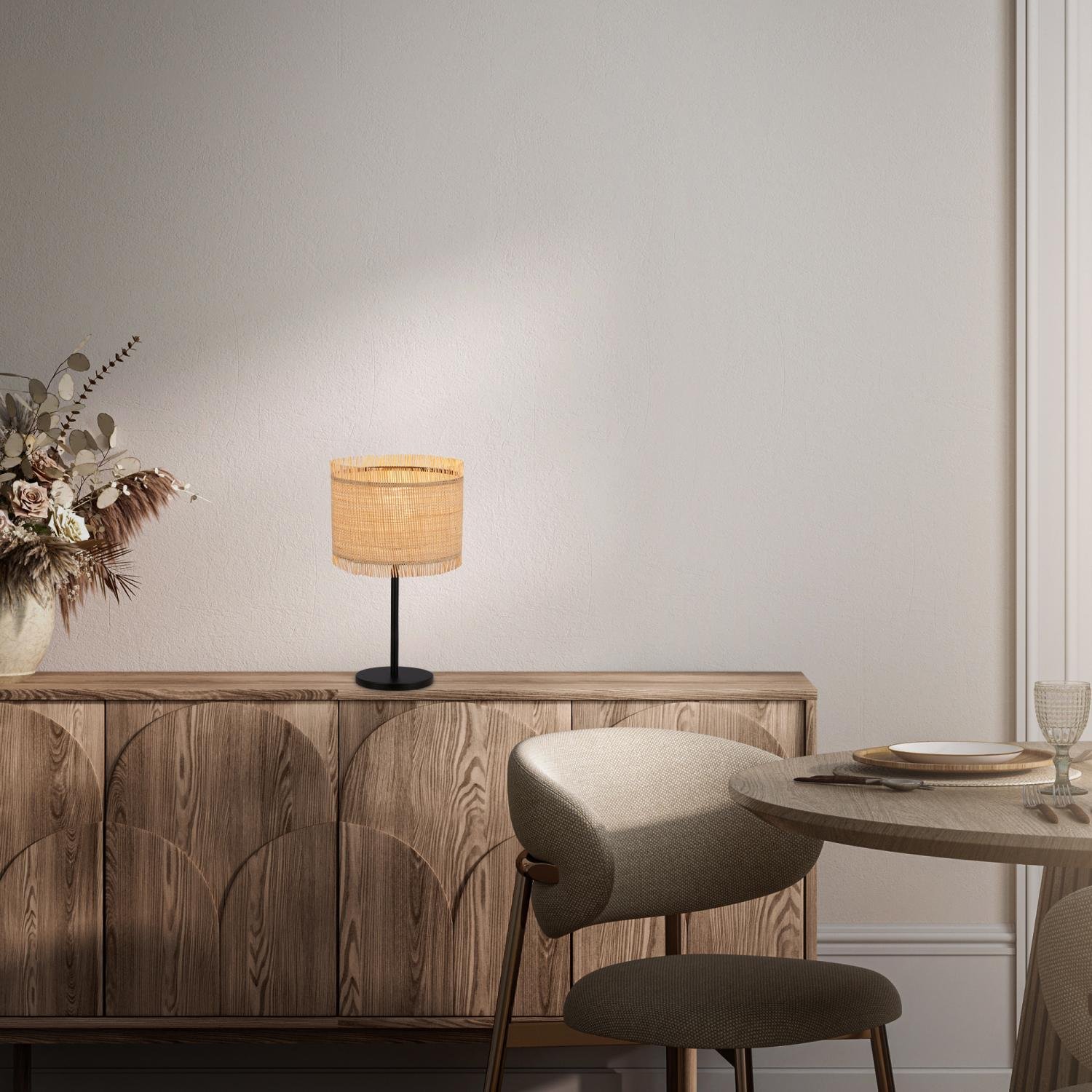 - Světelná atmosféra: Slámové stínidlo zajišťuje měkké, rozptýlené světlo ideální pro relaxaci a útulné večery.