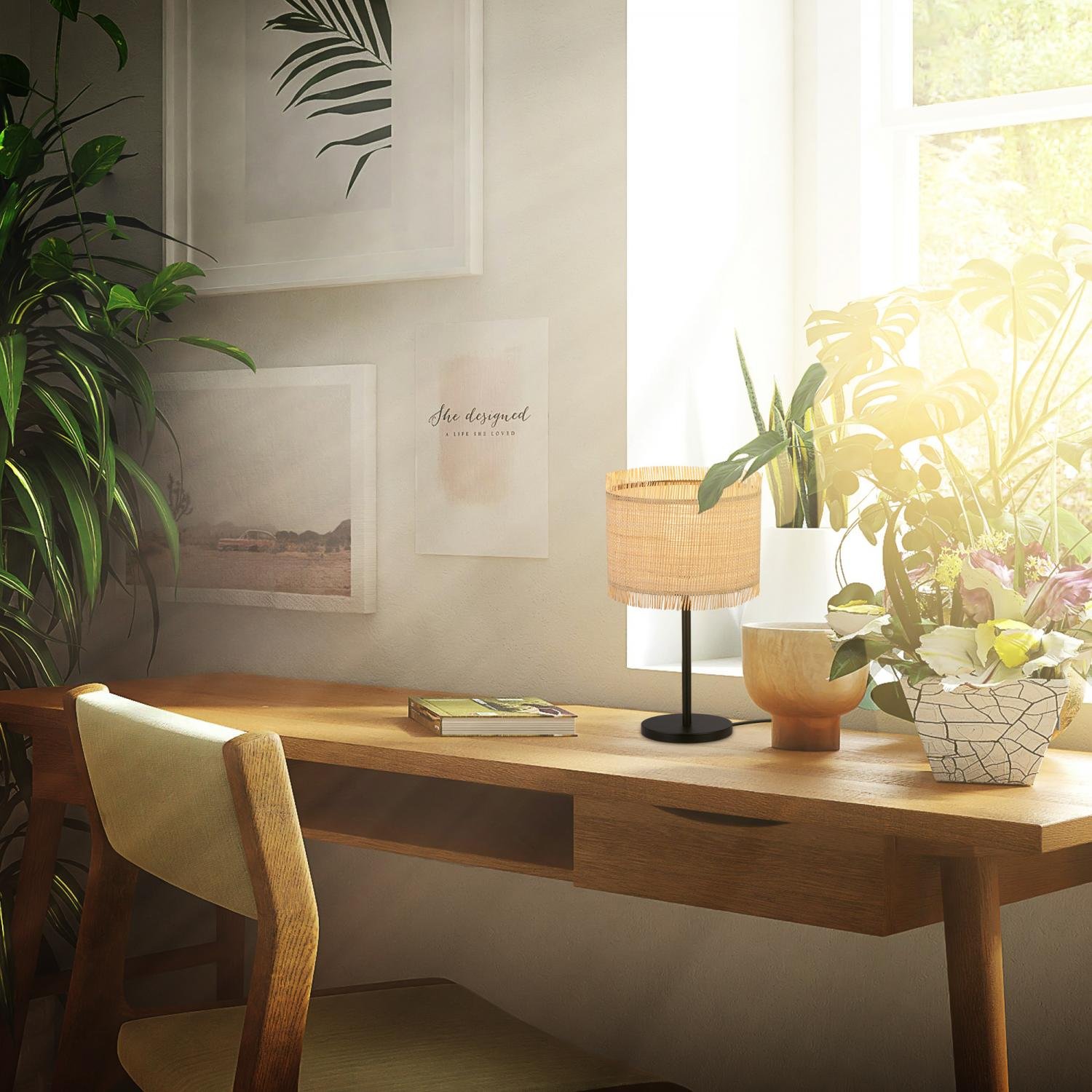 Borra stolní lampa se stínidlem ze slámy – přírodní design v Boho stylu