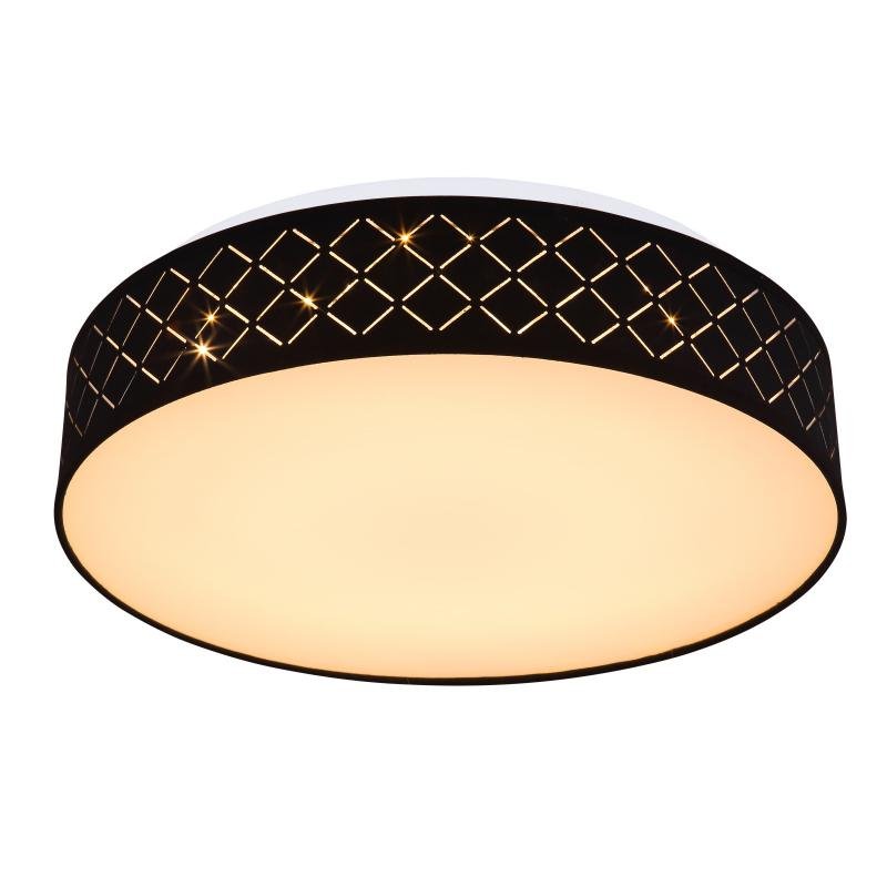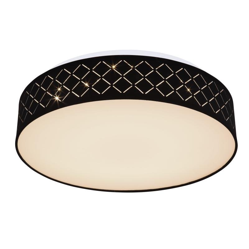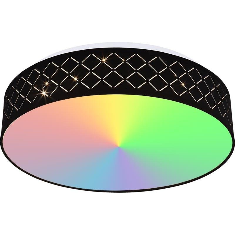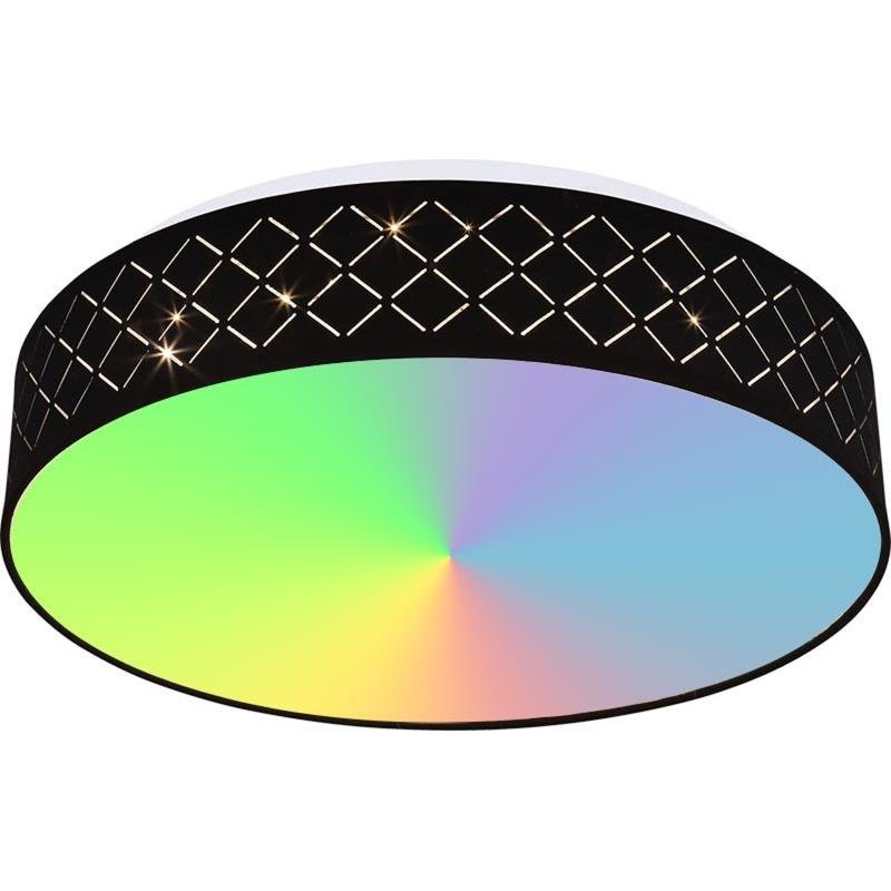 Toto kulaté stropní svítidlo ze série Clarke Ø40cm zapadne do prostředí široké škály stylů bydlení. Boční plocha 11cm stropního svítidla je vyrobena z černého textilu a má symetrický vzor. Opálová akrylová deska uvnitř textilu pokrývá desku LED stropního světla, která poskytuje 700lumenů světla s barvou světla 3000K (teplá bílá). Přiloženým dálkovým ovladačem můžete ztlumit světlo, nastavit světlo v barvách RGB a mít také funkci nočního osvětlení. Funkce duhového efektu, ve které lampa osvětluje místnost duhovými barvami, vytváří jedinečnou atmosféru.