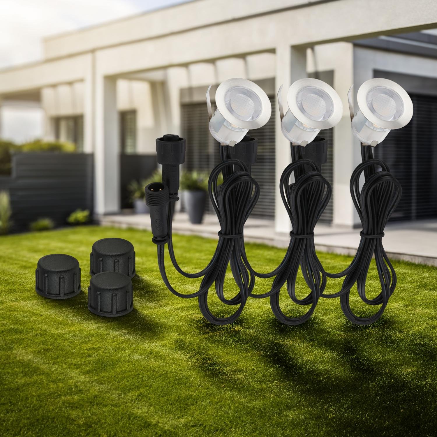 Objevte nadčasové řešení pro decentní a efektní osvětlení exteriérů – prodlužovací sada CONNECT TO SHINE Kebony obsahuje tři LED bodová svítidla určená k zapuštění do země. Tato sada je navržena jako rozšíření stávajícího systému (nutno kombinovat se startersetem č. 3912032) a nabízí možnost modulárního rozšíření vaší venkovní světelné instalace.