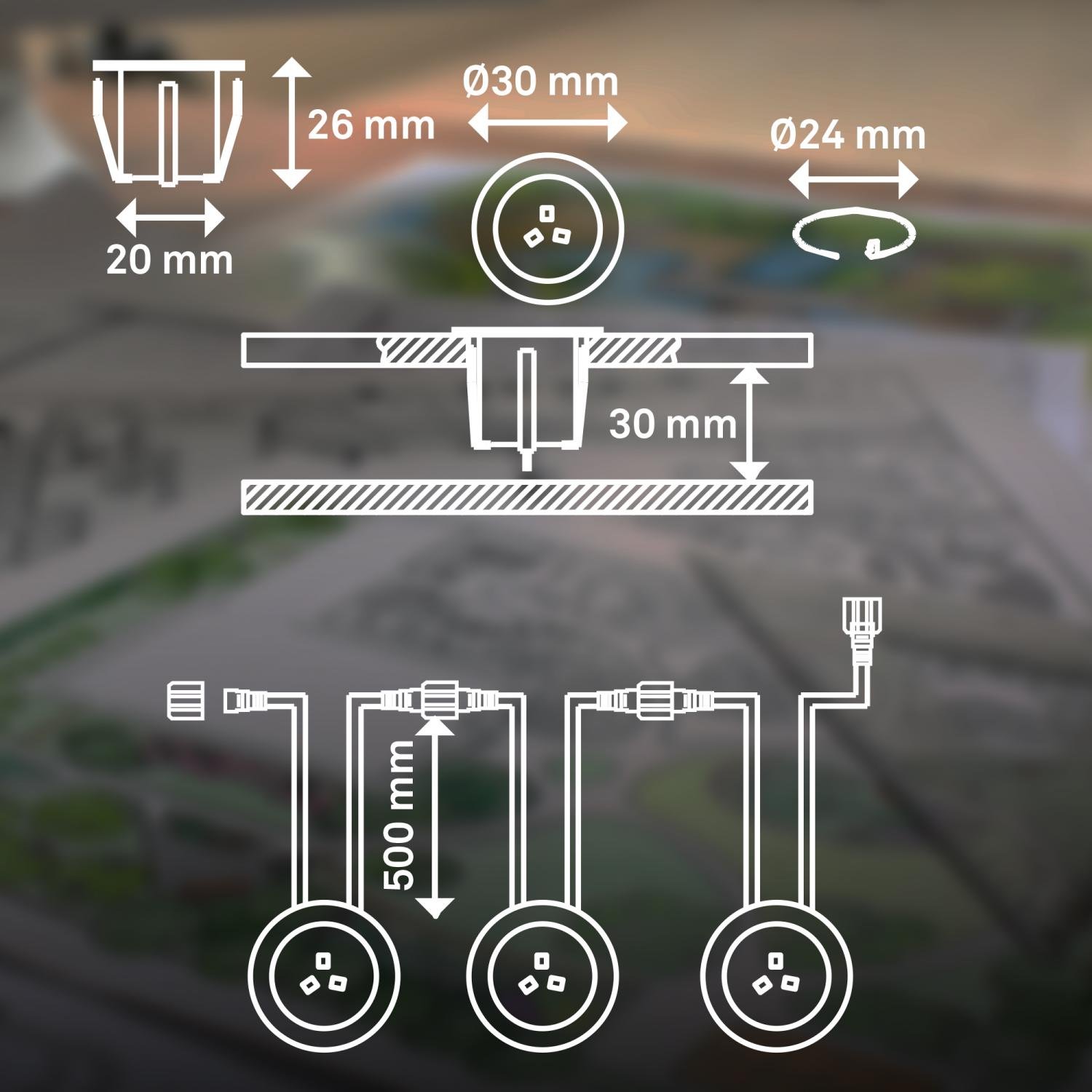 • Kompaktní rozměry – rozměr každého svítidla Ø30x26 mm, požadovaný průměr otvoru pro instalaci Ø24x30 mm.