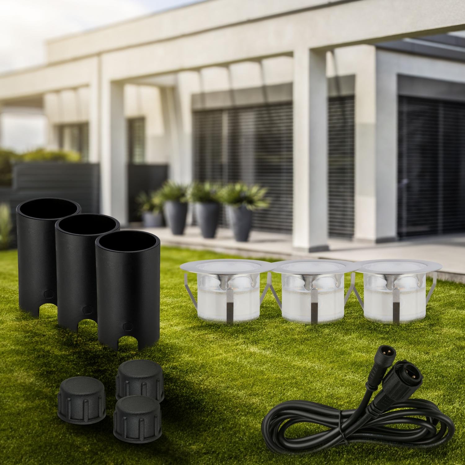 CONNECT TO SHINE prodlužovací sada Tilia – 3ks LED zápustných svítidel do země, IP67