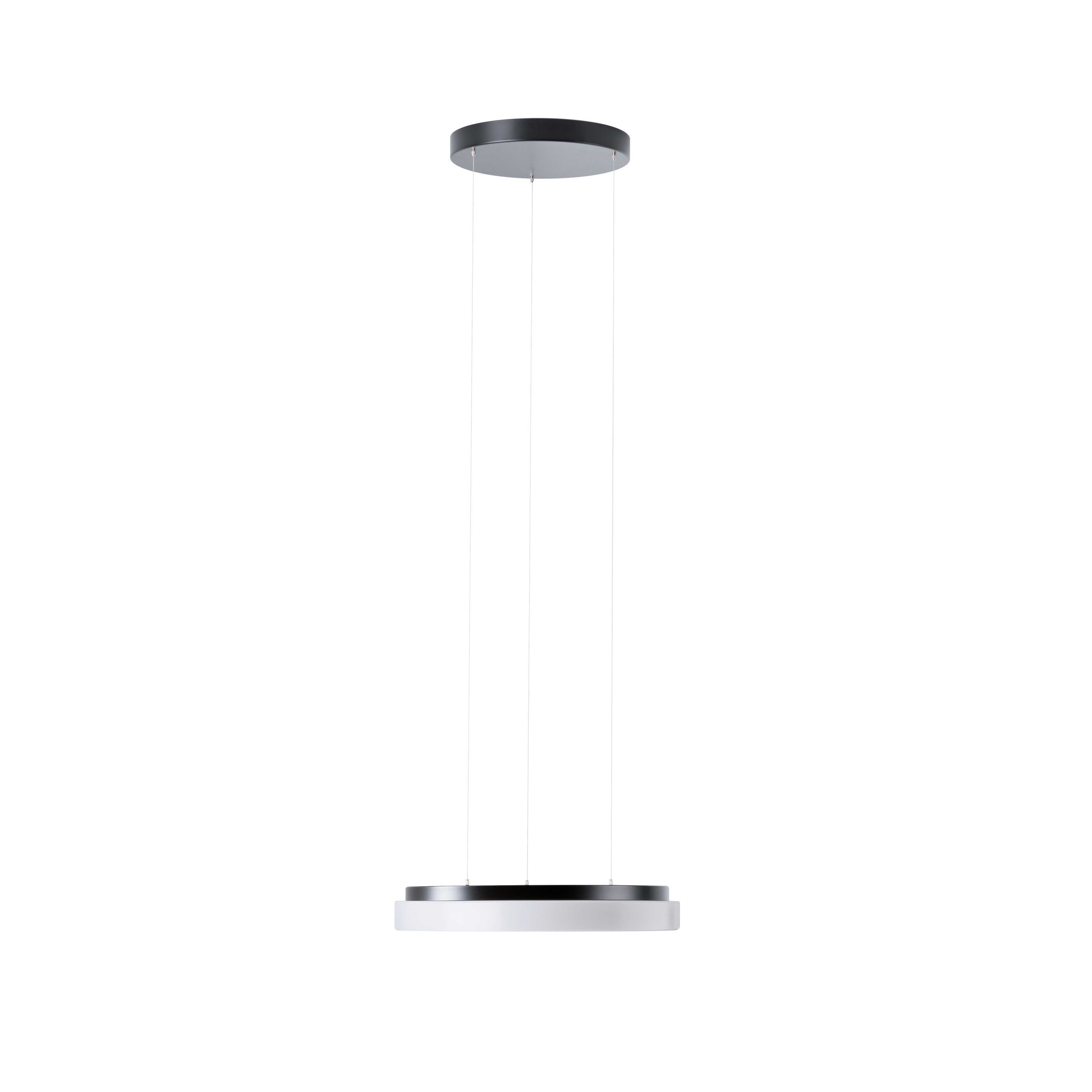 Kruhové závěsné svítidlo s průměrem stínidla Ø370 mm. Svítidlo se skládá z bezkabelového závěsu LE a opálového polykarbonátového stínidla. Stínidlo je uchyceno za pomoci sklapovacích držáků. Svítidlo je vhodné do interiéru.