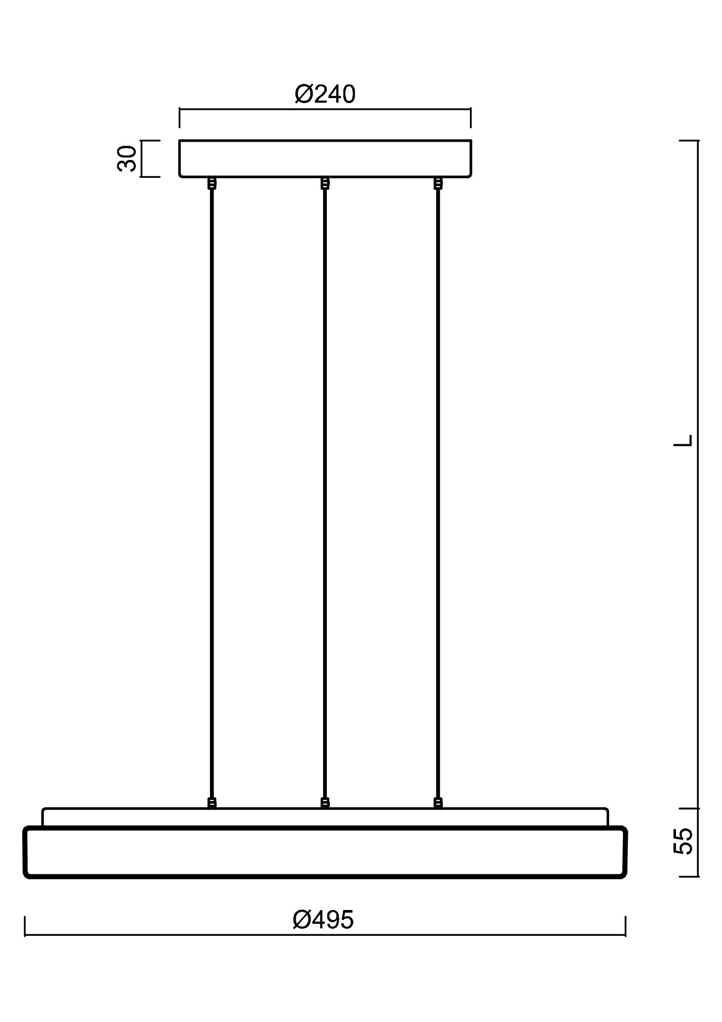 Kruhové závěsné svítidlo s průměrem stínidla Ø495 mm. Svítidlo se skládá z bezkabelového závěsu LE a opálového polykarbonátového stínidla. Stínidlo je uchyceno za pomoci sklapovacích držáků. Svítidlo je vhodné do interiéru.