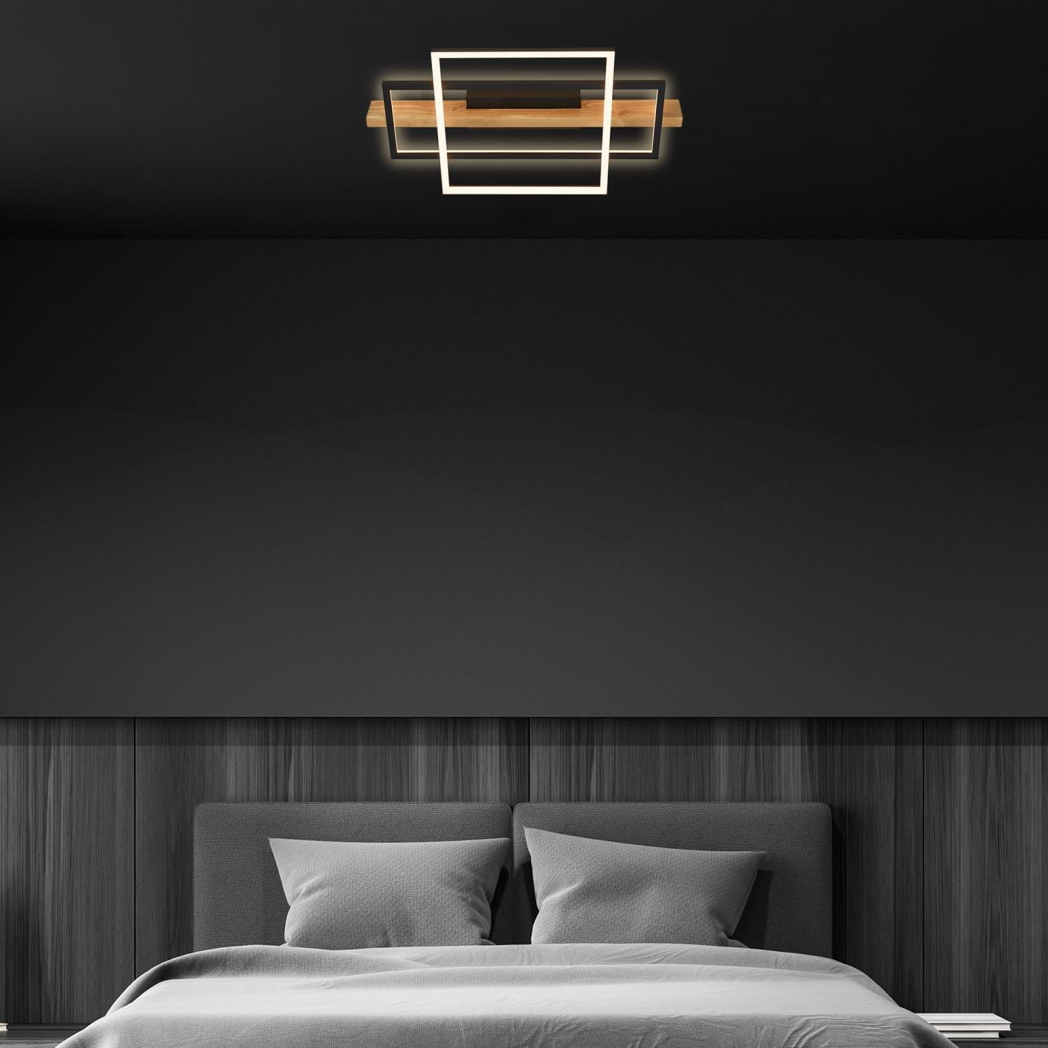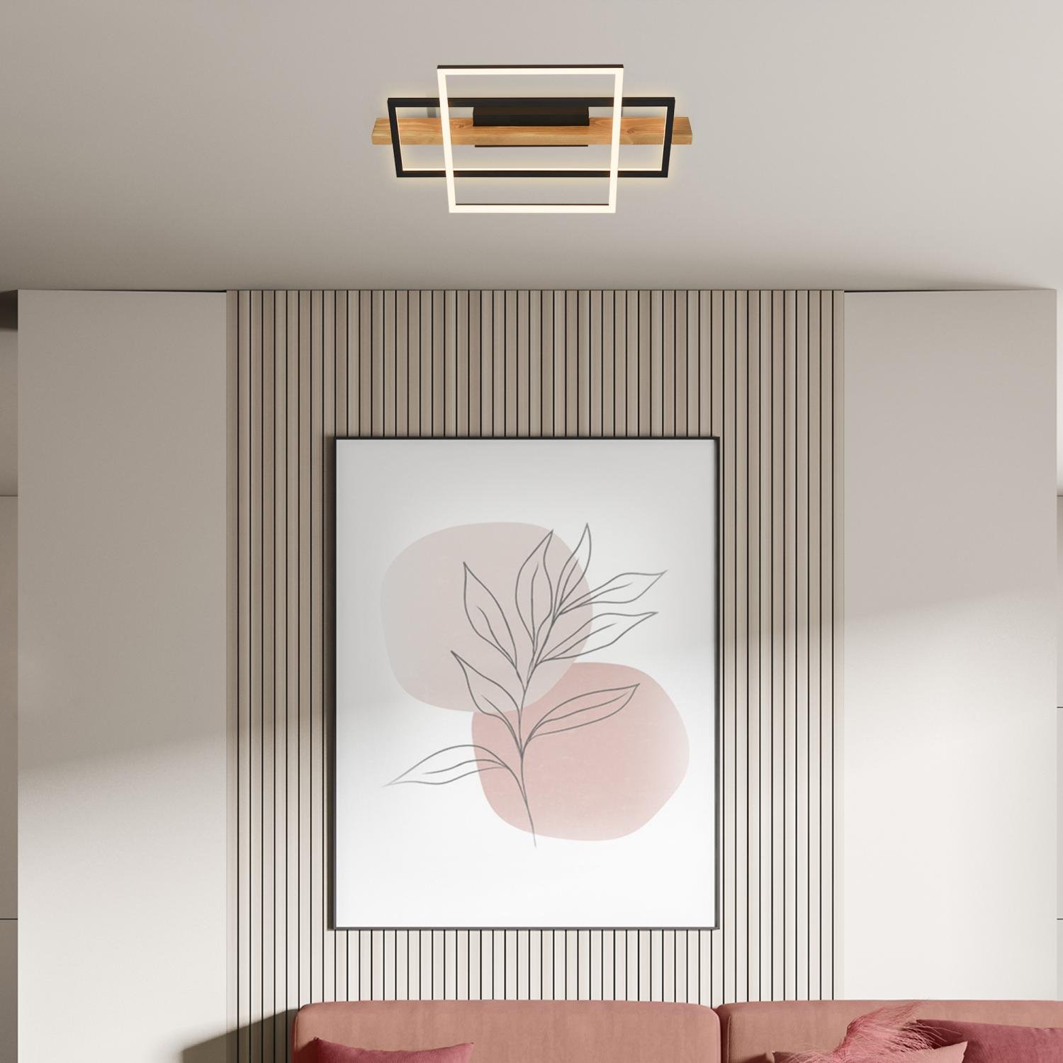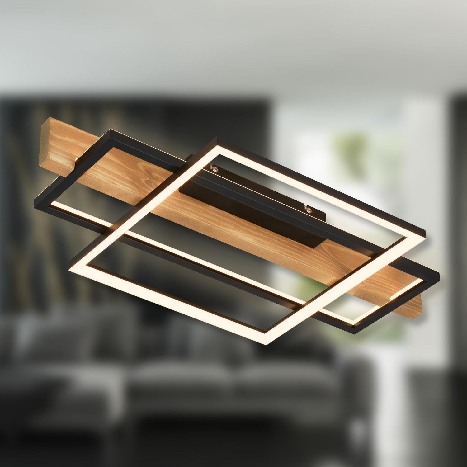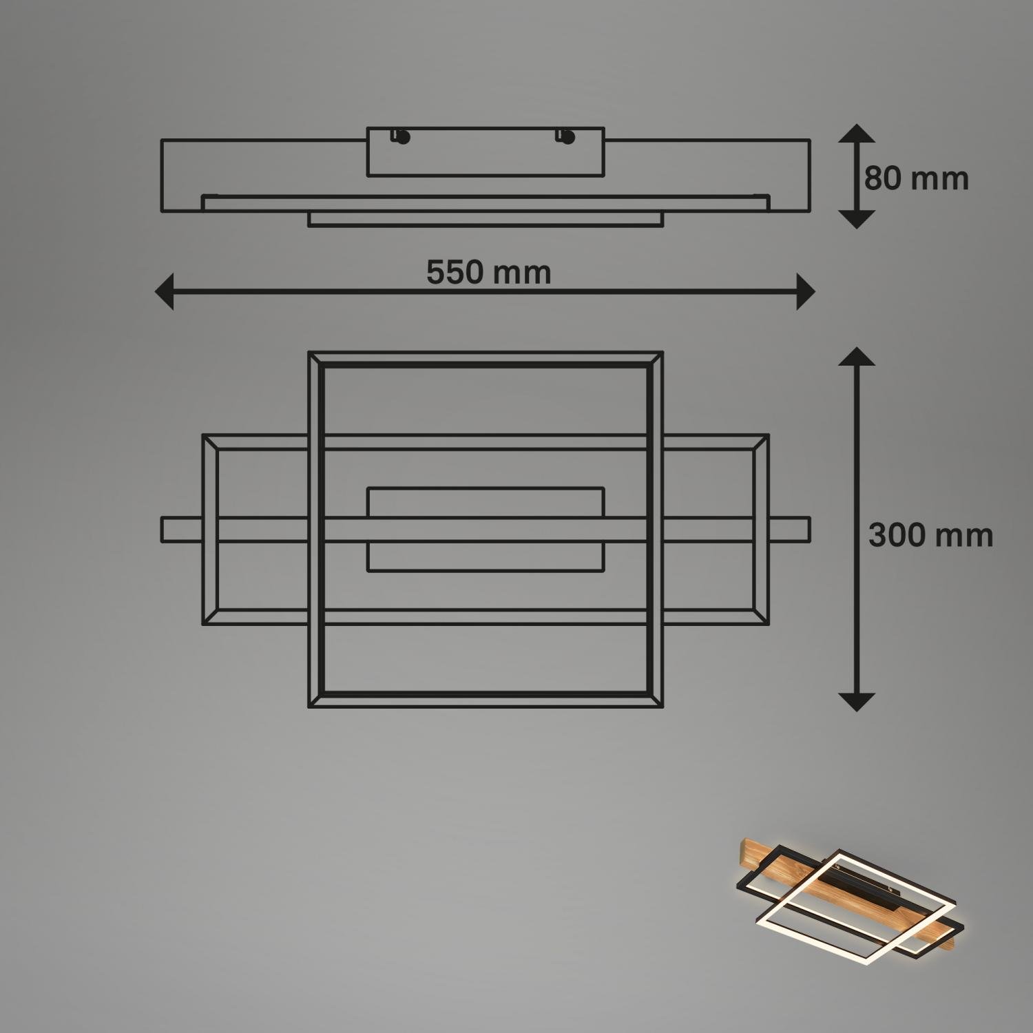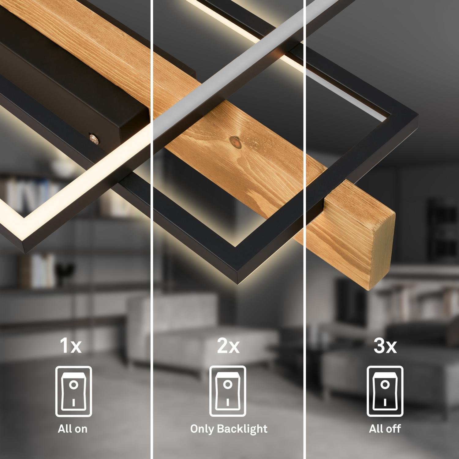 Cadre LED stropní svítidlo, přímé a nepřímé osvětlení, 3-krokové spínání, 2 rámy, dekor dřeva, 55x30 cm, černá/dřevo - BRILONER
