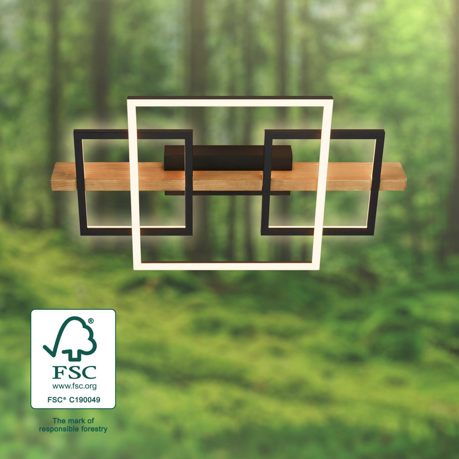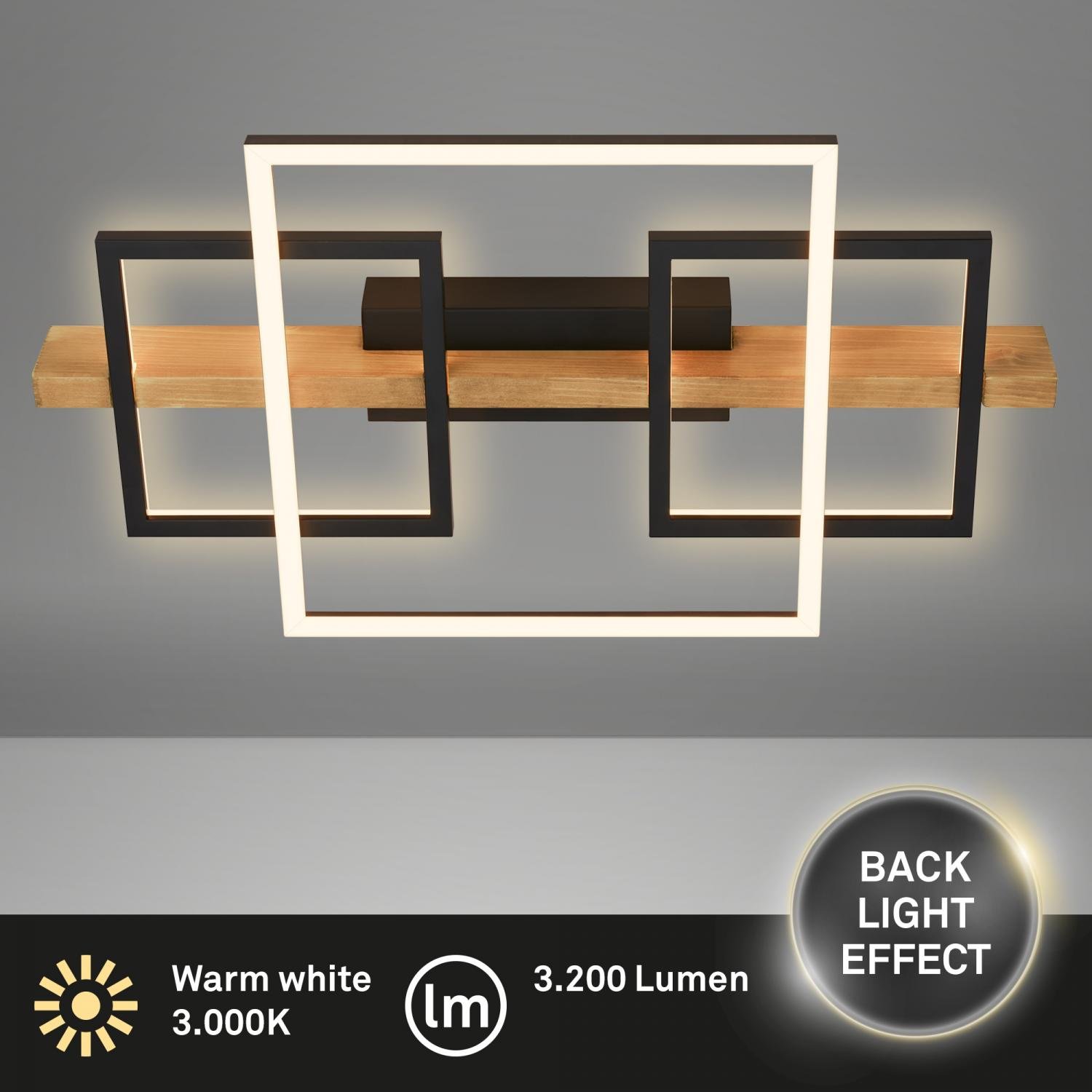 Cadre LED stropní svítidlo, přímé a nepřímé osvětlení, 3-krokové spínání, 3 rámy, dekor dřeva, 55x30 cm, černá/dřevo - BRILONER