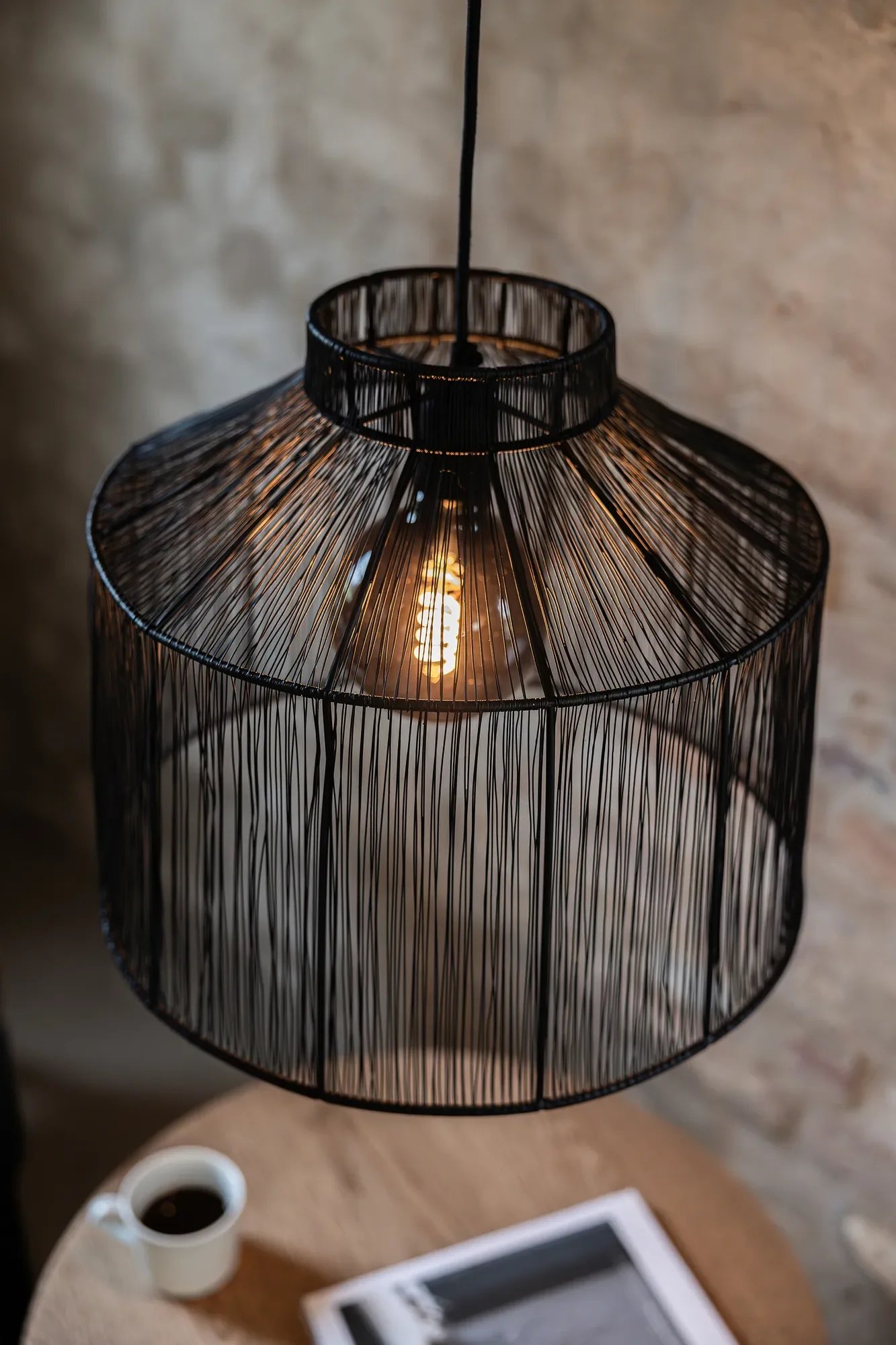 Závěsné svítidlo Markslöjd Capanna v elegantním matném černém provedení je dokonalým příkladem propojení moderního stylu a funkčnosti. Jeho stínidlo tvoří dekorativní kovové dráty, které nejen zvýrazňují tvar svítidla, ale také vytvářejí unikátní světelné efekty a zajímavé stíny v prostoru. Minimalistický vzhled je podtržen černým textilním kabelem a stropní krytkou ve stejném odstínu.