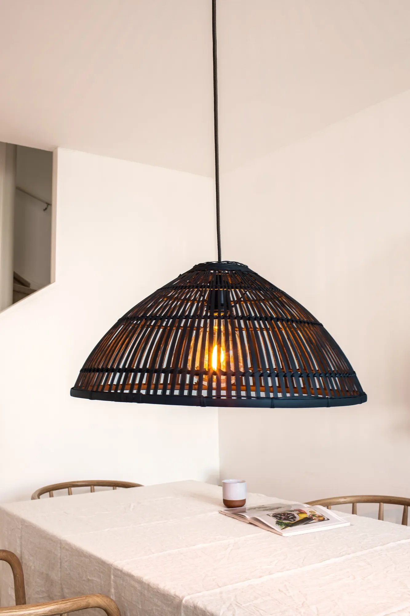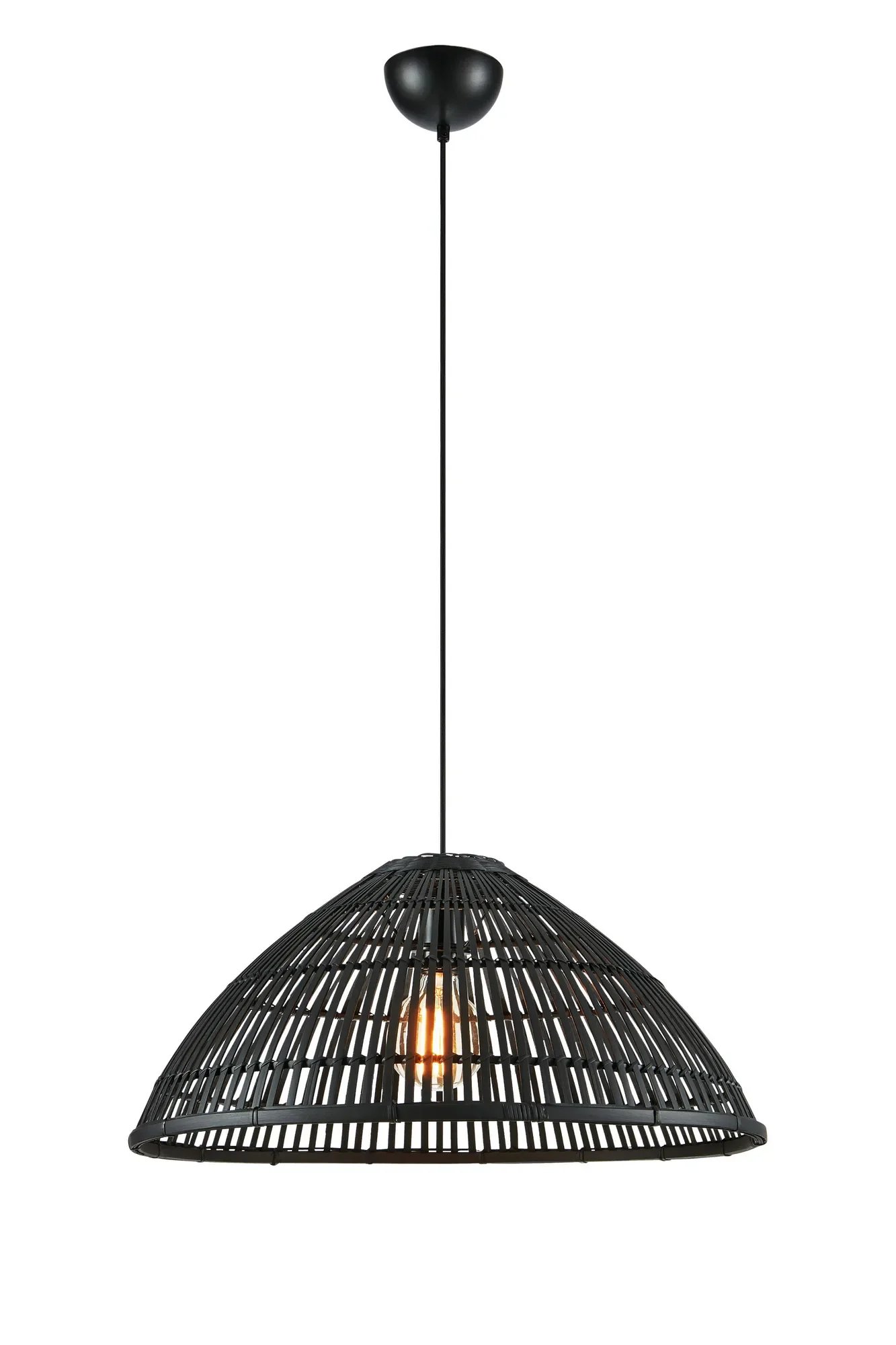 Závěsné svítidlo Markslöjd Capello v černé barvě představuje stylovou kombinaci přírodních materiálů a moderního designu. Každý kus je pečlivě ručně pletený z matného černého bambusu, což zaručuje originální vzhled a vytváří v interiéru jedinečnou hru světla a stínu. S průměrem 58 cm je ideální volbou nad kulatý stůl do jídelny, do obývacího pokoje nebo stylové kavárny. Černý textilní kabel dlouhý 150 cm a stropní kryt v černé barvě podtrhují celkový dojem a snadno zapadnou do každého moderního nebo rustikálního prostoru.