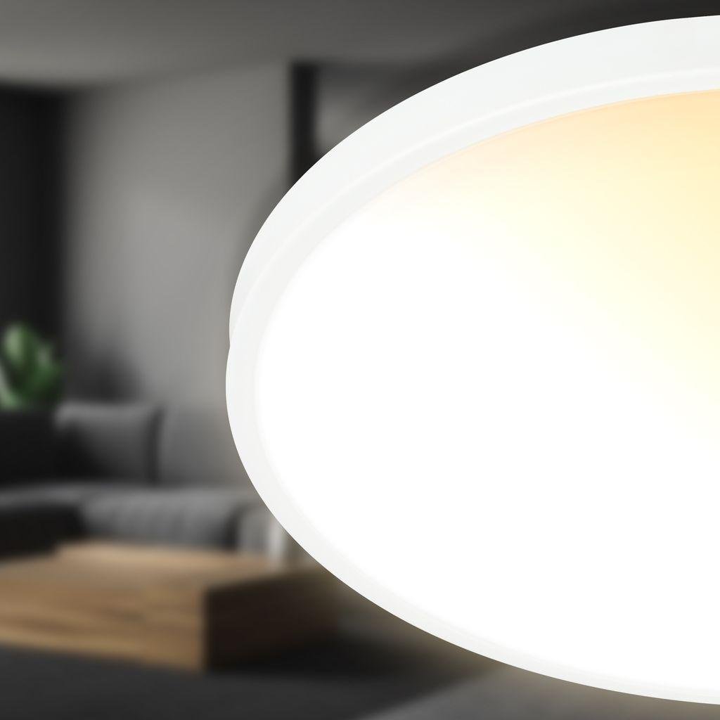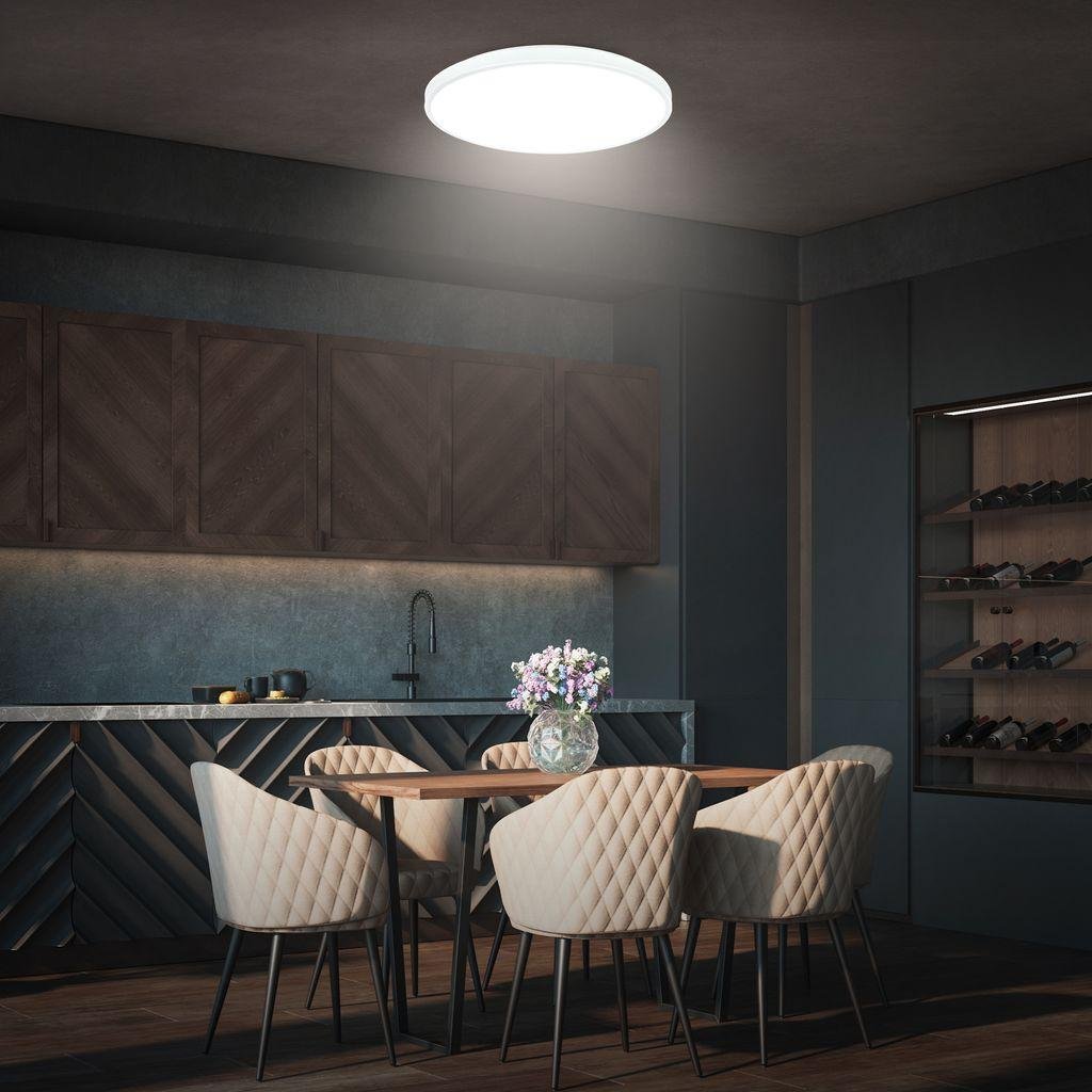 S kompaktními rozměry Ø 38 × 6 cm je svítidlo Competo ideální i do místností s nižšími stropy, kde oceníte jeho nenápadnost a čistotu linií. Dekorativní bílá obruba podtrhuje moderní vzhled a univerzálnost svítidla. Mléčný difuzor navíc zajišťuje dokonale rovnoměrné rozptýlení světla bez ostrých stínů.