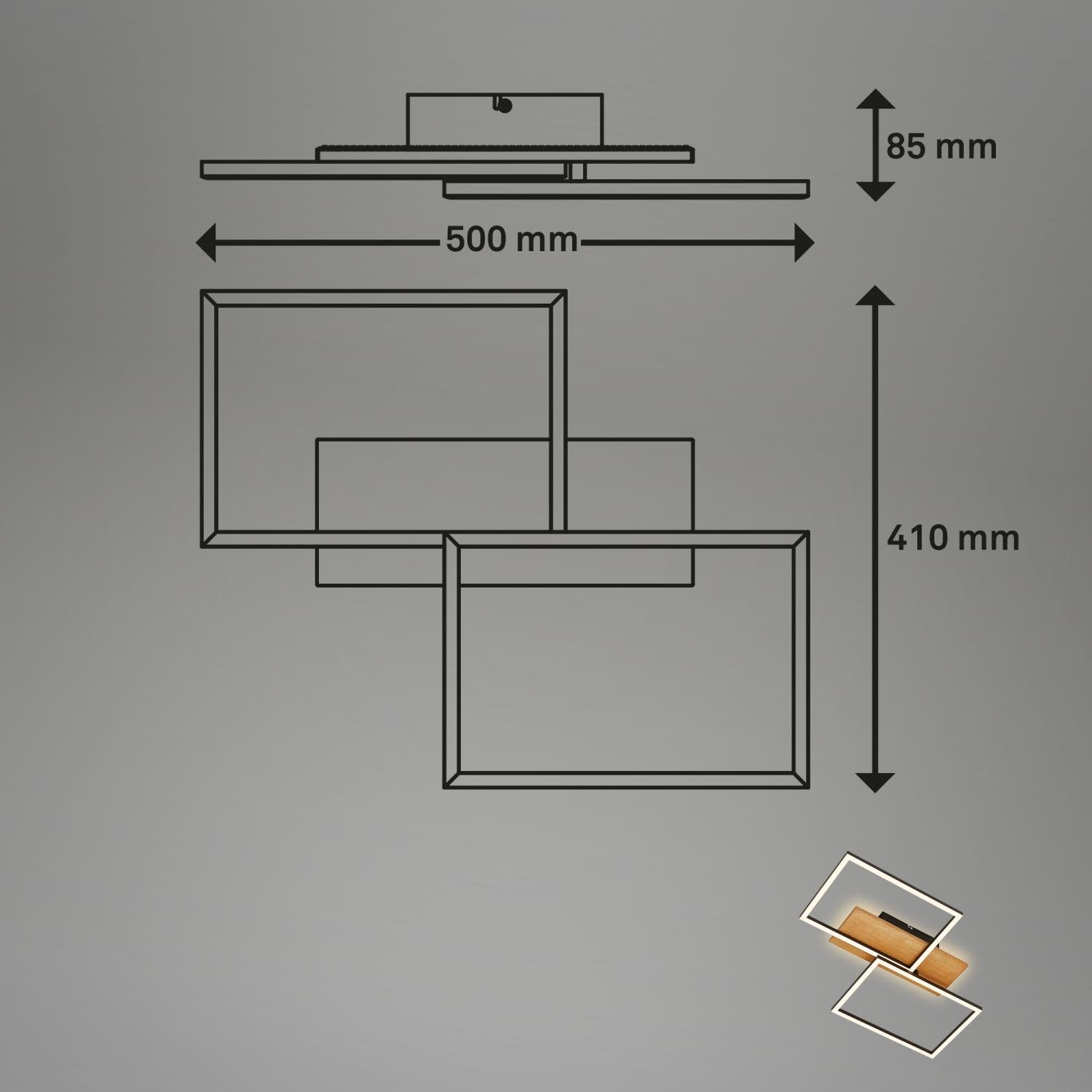 Stropní svítidlo Cornice LED od značky BRILO představuje dokonalou symbiózu kovu a přírodního dřeva v elegantní černé barvě. Dva geometrické rámy s integrovanou LED technologií a stylovým dřevěným detailem se stanou výrazným a nadčasovým designovým prvkem vašeho interiéru. Ideální volba pro ty, kteří hledají originální akcent do obývacího pokoje, ložnice či moderní kuchyně.