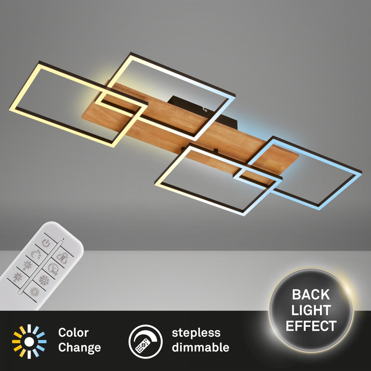 Cornice LED stropní svítidlo, stmívatelné, 4 rámy, 5200lm, 47W, CCT, dálkový ovladač, černá - BRILO