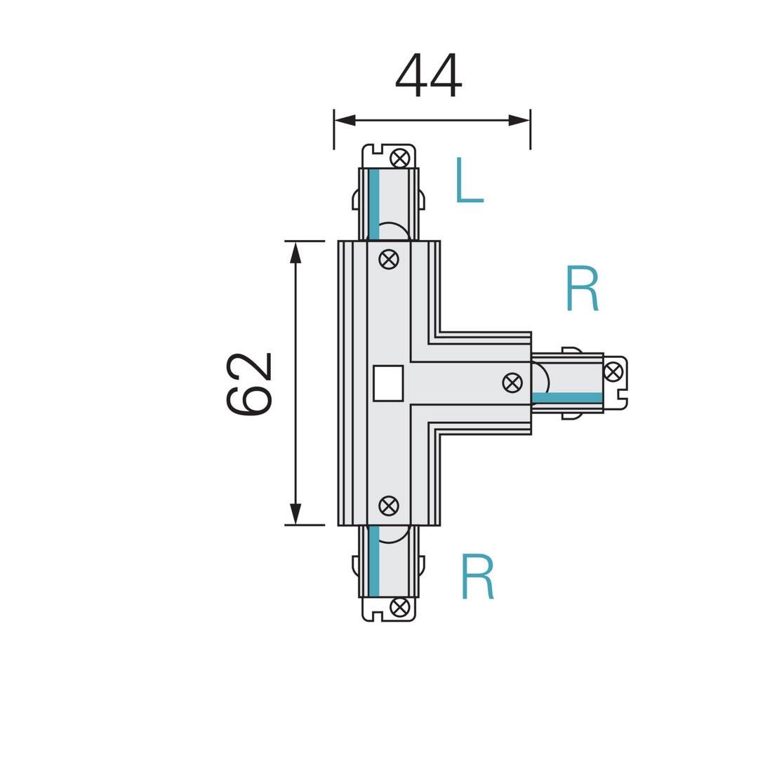 Deko-Light 1-fázový kolejnicový systém, D One T-spojka, pravé-pravé-levé, 220-240V černá RAL 9011 121 mm - LIGHT IMPRESSIONS