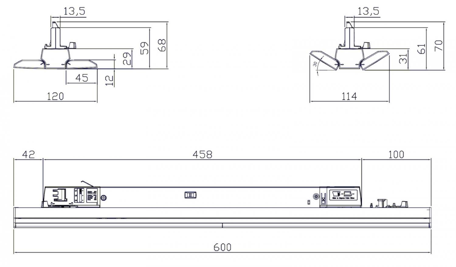 způsobilý pro BEG, možnost nouzového napájení, dlouhá životnost 60 000 h [L80B50], zvláště energeticky úsporné, výkon nastavitelný ve třech úrovních, LINEAR PRO FOLD 3-fázové pásové světlo je ideálním řešením pro osvětlení prodejních regálů. Díky svému speciálnímu vzhledu je ideální pro osvětlení regálových uliček. To znamená, že je schopen osvětlit typické scénáře použití rovnoměrně po celé výšce na obou stranách uličky. Vložka s difuzním světlem uprostřed zároveň zajišťuje rovnoměrné osvětlení samotné uličky. S dlouhou životností 60 000 hodin [L80B50] je toto světlo dlouhodobou investicí. Výkon lze nastavit ve třech úrovních [kromě modelů DALI], aby se světlo optimálně přizpůsobilo požadavkům. Varianty 1500 mm mají posuvný adaptér přípojnic a 50 % z nich je k dispozici v zrcadlených verzích A/B, které umožňují bezproblémové vyrovnání i přes konektory přípojnic. Kolejnicové světlo LINEAR PRO FOLD – profesionální osvětlení prodejních regálů s maximální flexibilitou a lze jej ideálně kombinovat s kolejovými reflektory.