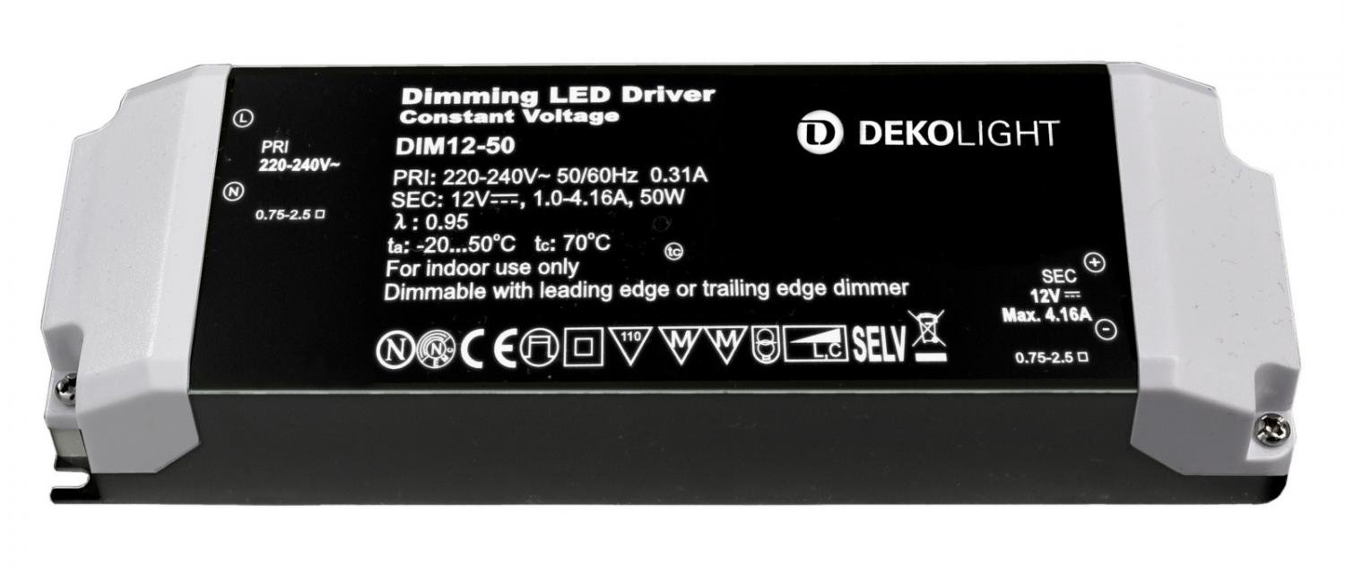 Deko-Light LED-napájení BASIC, DIM, CV 12V 12-50W konstantní napětí 1000-4610 mA IP20 stmívatelné 12V DC 12,00-50,00 W - LIGHT IMPRESSIONS