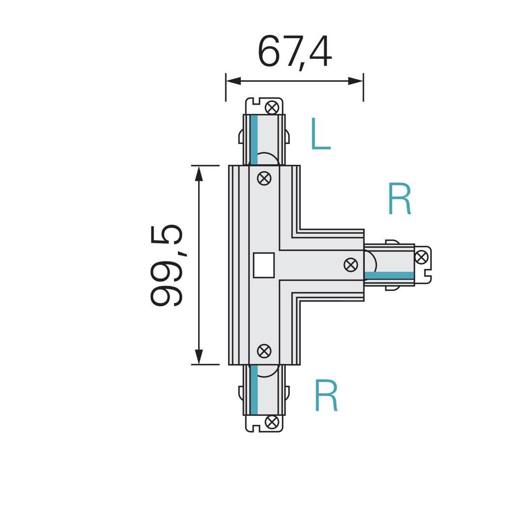 Deko-Light kolejnicový systém 3-fázový 230V D Line T-spojka pravé-pravé-levé 230V šedá RAL 7040 166 - LIGHT IMPRESSIONS