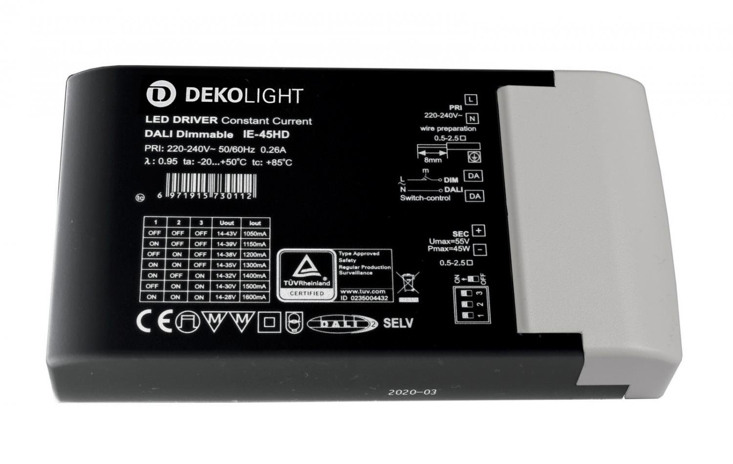 Deko-Light napájení BASIC, DIM, Multi CC, IE-45HD konstantní proud 1050-1600 mA IP20 stmívatelné 14-43V DC 14,7-45,00 W - LIGHT IMPRESSIONS