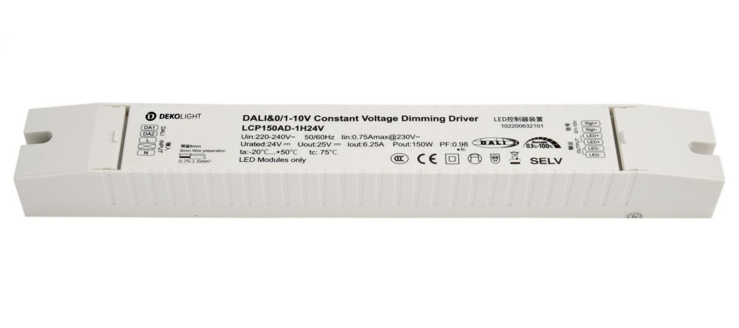 Deko-Light napájení (CV, DC) stmívatelné, BASIC, DIM, CV, LCP150AD-1H24V, DALI 2.0 konstantní napětí 0-6250 mA IP20 24V DC 150W - LIGHT IMPRESSIONS