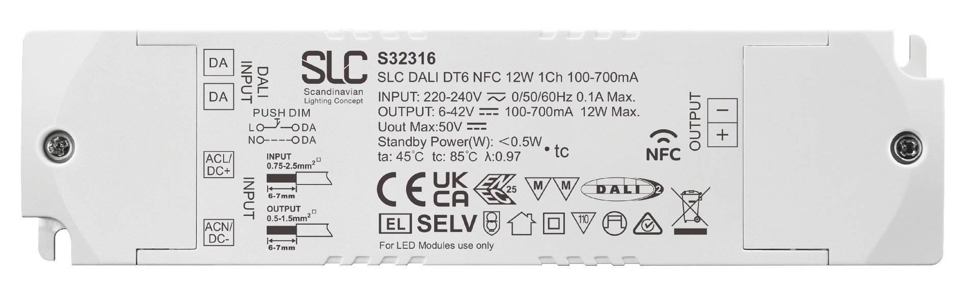 Driver NFC 1Ch 100-700mA QA 12W DALI IP20 - TLG
