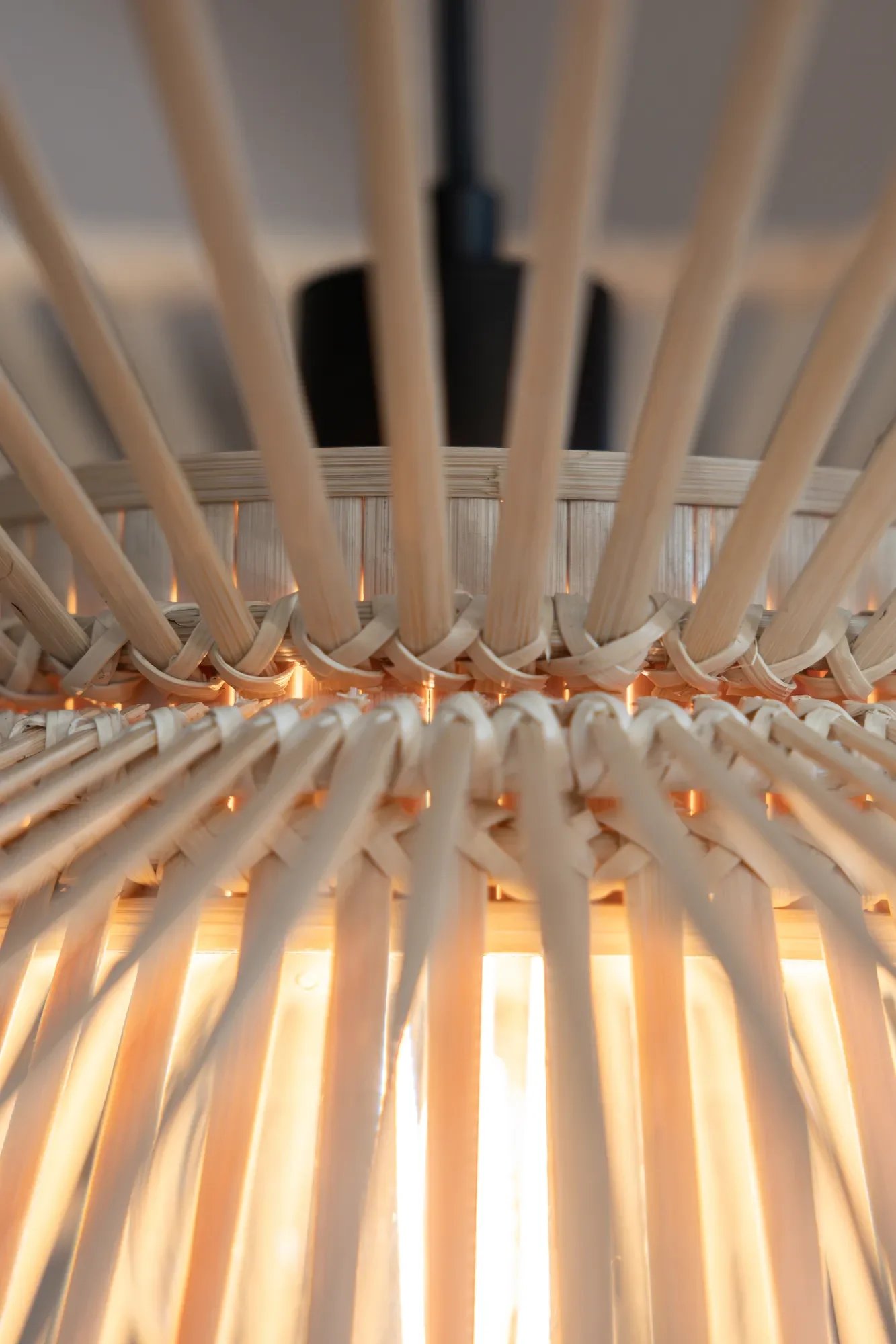 Pro maximální efekt doporučuji použít čirou LED žárovku s filamentem v teplé bílé barvě. Svítidlo díky otevřené konstrukci vynikne zejména v prostornějších místnostech nebo nad jídelním stolem. Díky přírodnímu bambusu je svítidlo lehce kombinovatelné s dřevěným i moderním nábytkem a vnáší do prostoru příjemnou harmonii. Variantou je také provedení v matné černé barvě, pokud preferujete výraznější kontrasty.