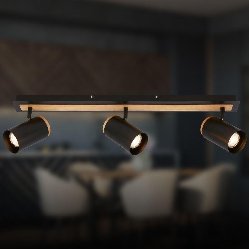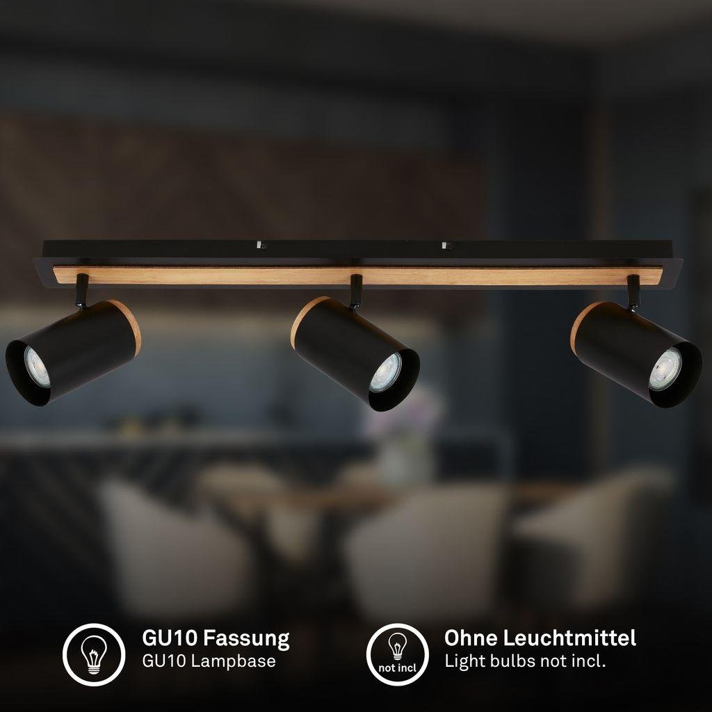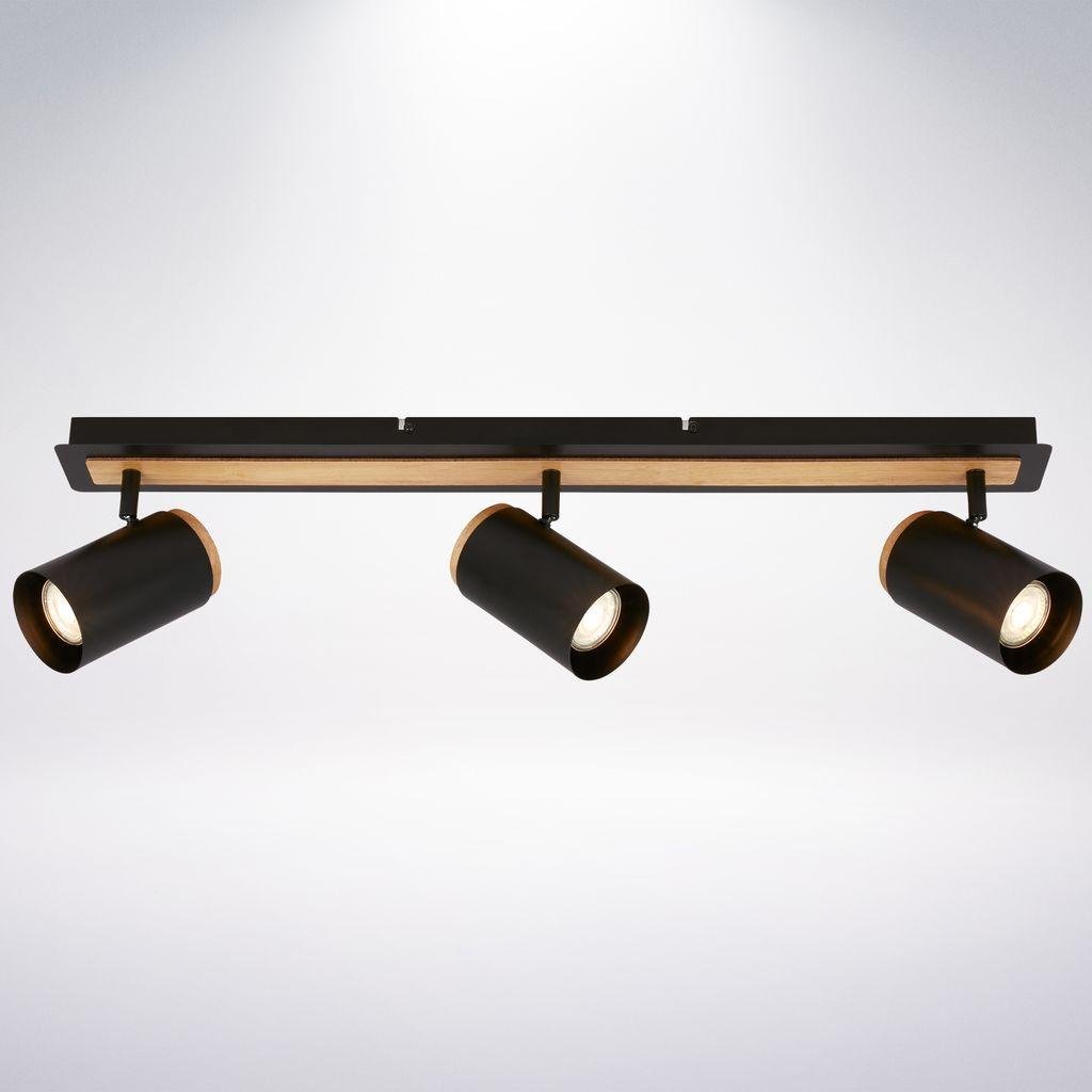 Duta stropní bodové svítidlo – 3-ramenné, černá/dřevo, GU10, max. 10W, nastavitelné – BRILONER