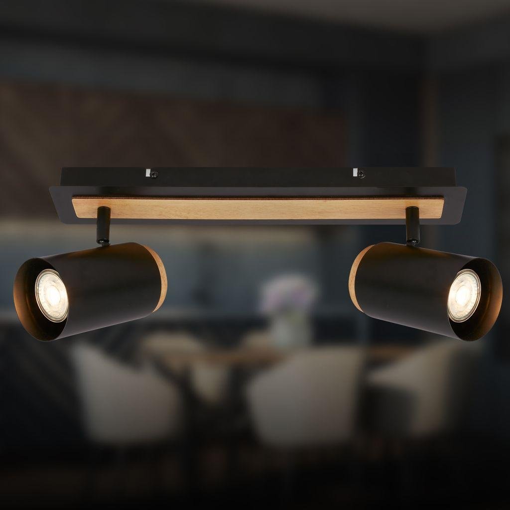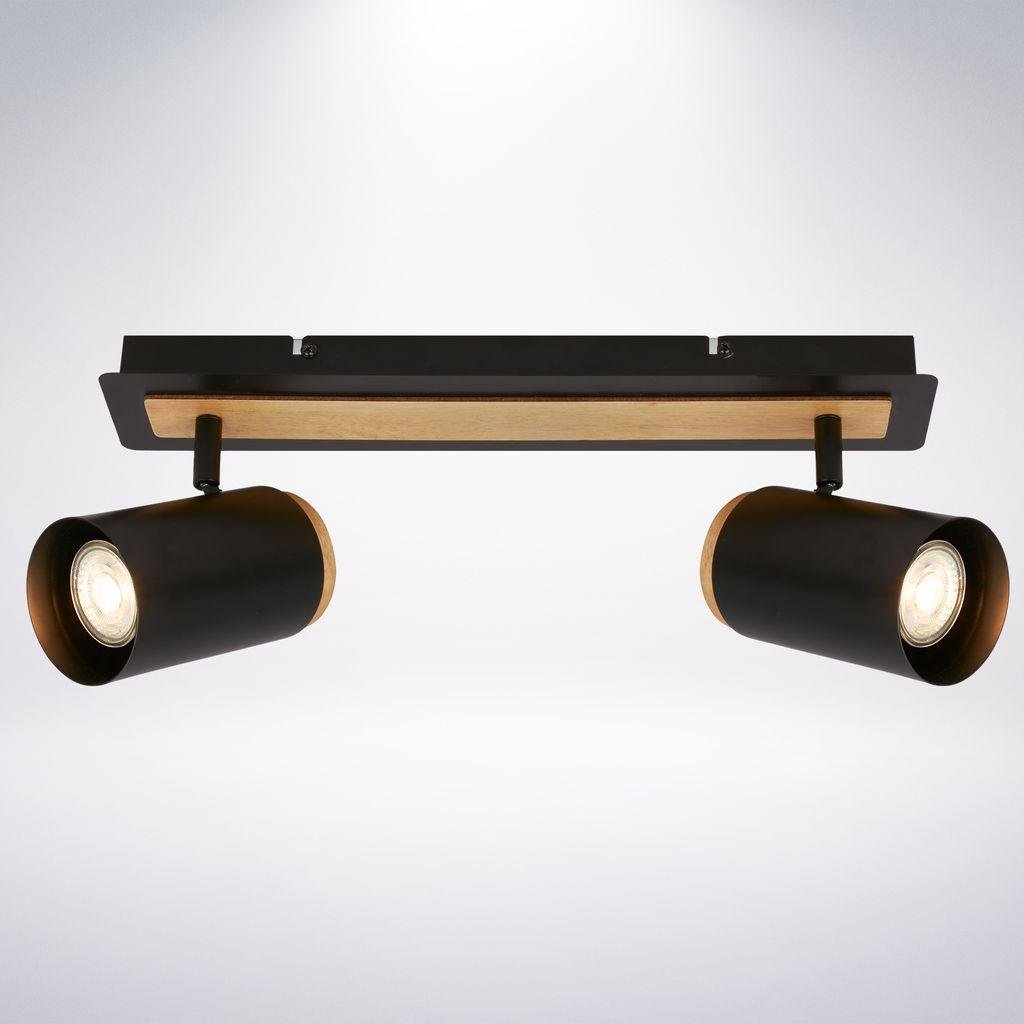 Duta stropní bodové svítidlo - GU10 patice, max. 10W, nastavitelné, dřevo/černá, 2-ramenné - BRILONER
