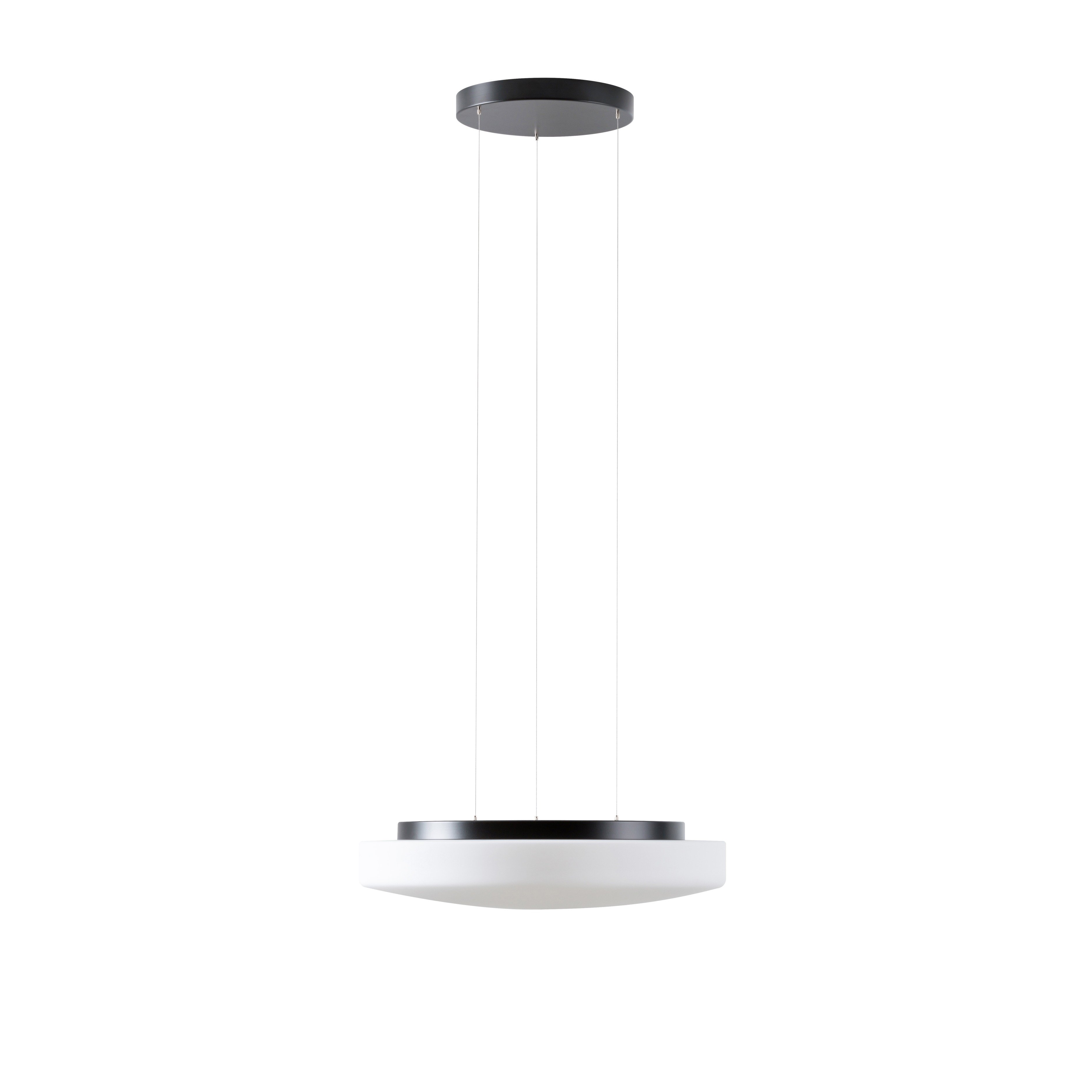 Černé závěsné přepínatelné LED svítidlo DALI a skleněné stínidlo TRIPLEX OPAL