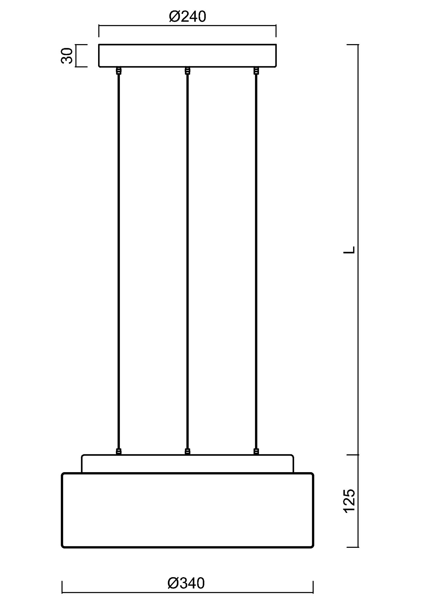 Kruhové závěsné svítidlo s průměrem stínidla Ø340 mm. Svítidlo se skládá z bezkabelového závěsu LE a ručně vyráběného třívrstvého skleněného stínidla TRIPLEX OPAL s matovaným povrchem. Stínidlo je uchyceno za pomoci sklapovacích držáků. Svítidlo je vhodné do interiéru.