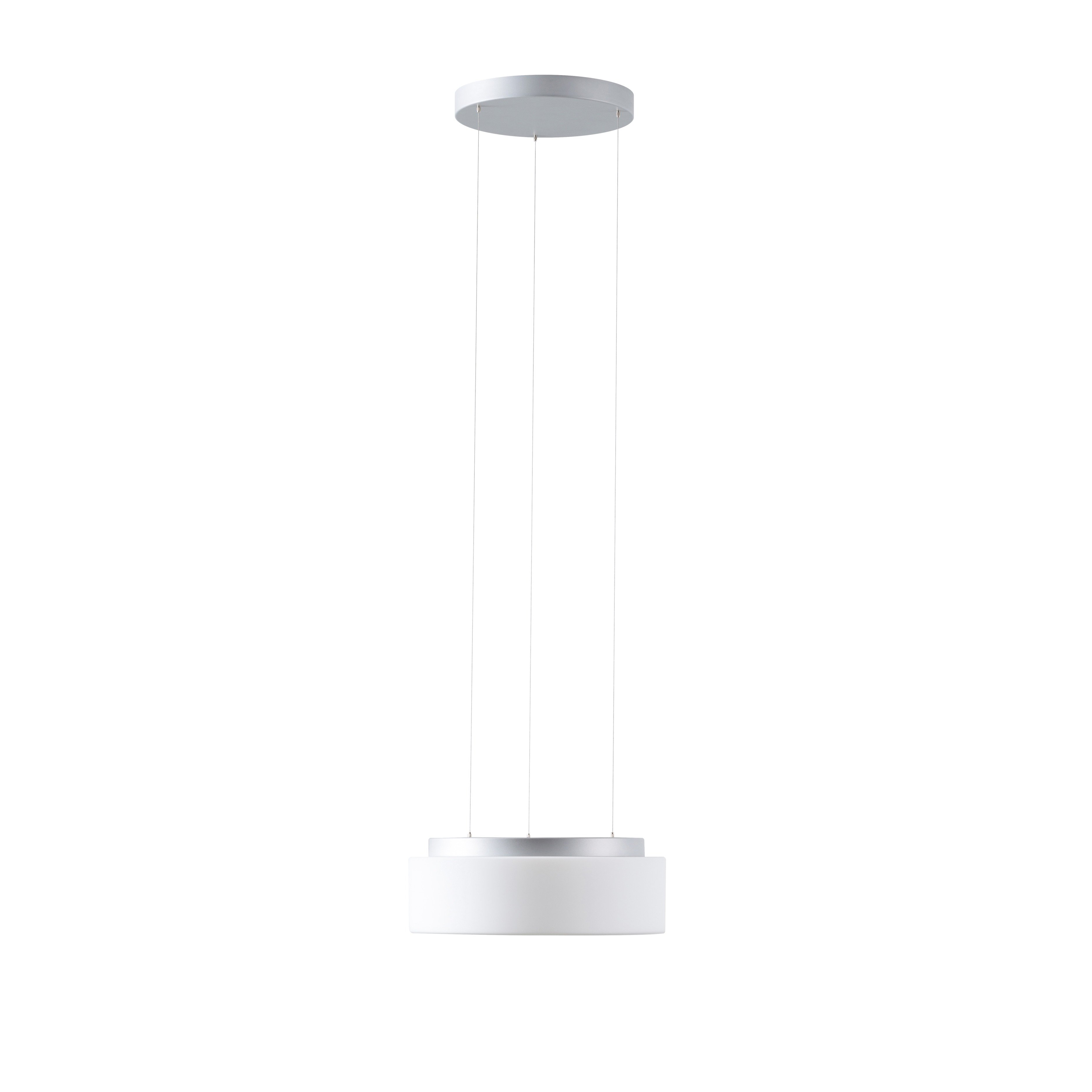 Stříbrné závěsné přepínatelné LED svítidlo ON/OFF a skleněné stínidlo TRIPLEX OPAL