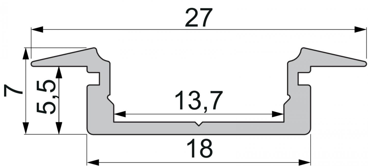 Reprofil, ET-01-12 plochý T-profil pro 12 - 13,3 mm LED pásek, hliník, matná bílá délka: 2000 mm, šířka: 27 mm, výška: 7 mm