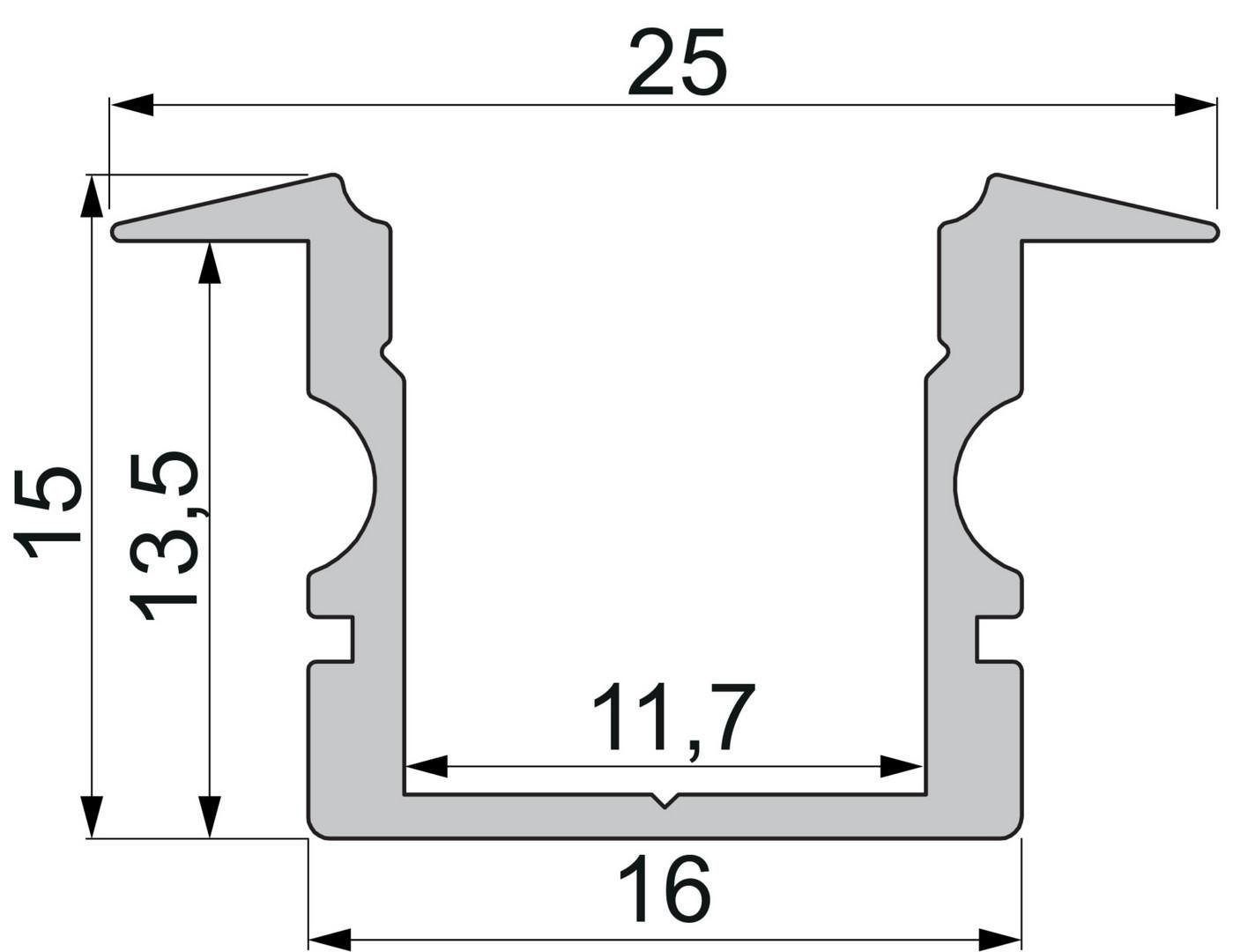 Reprofil, ET-02-10 vysoký T-profil pro 10 - 11,3 mm LED pásek, hliník, matná stříbrná, eloxovaný, délka: 2000 mm, šířka: 25 mm, výška: 15 mm