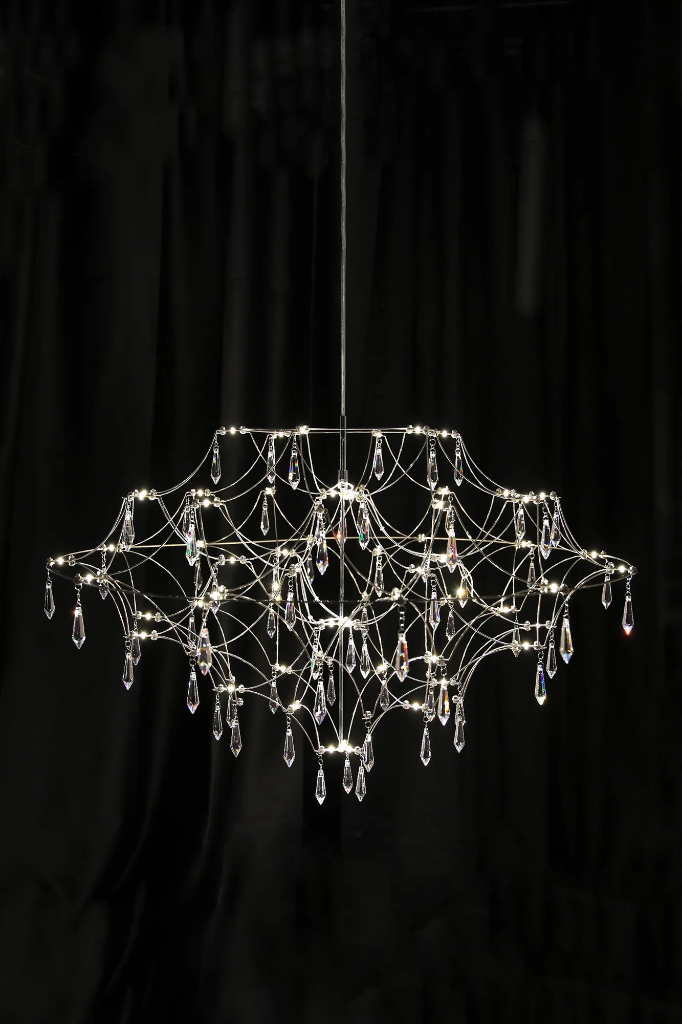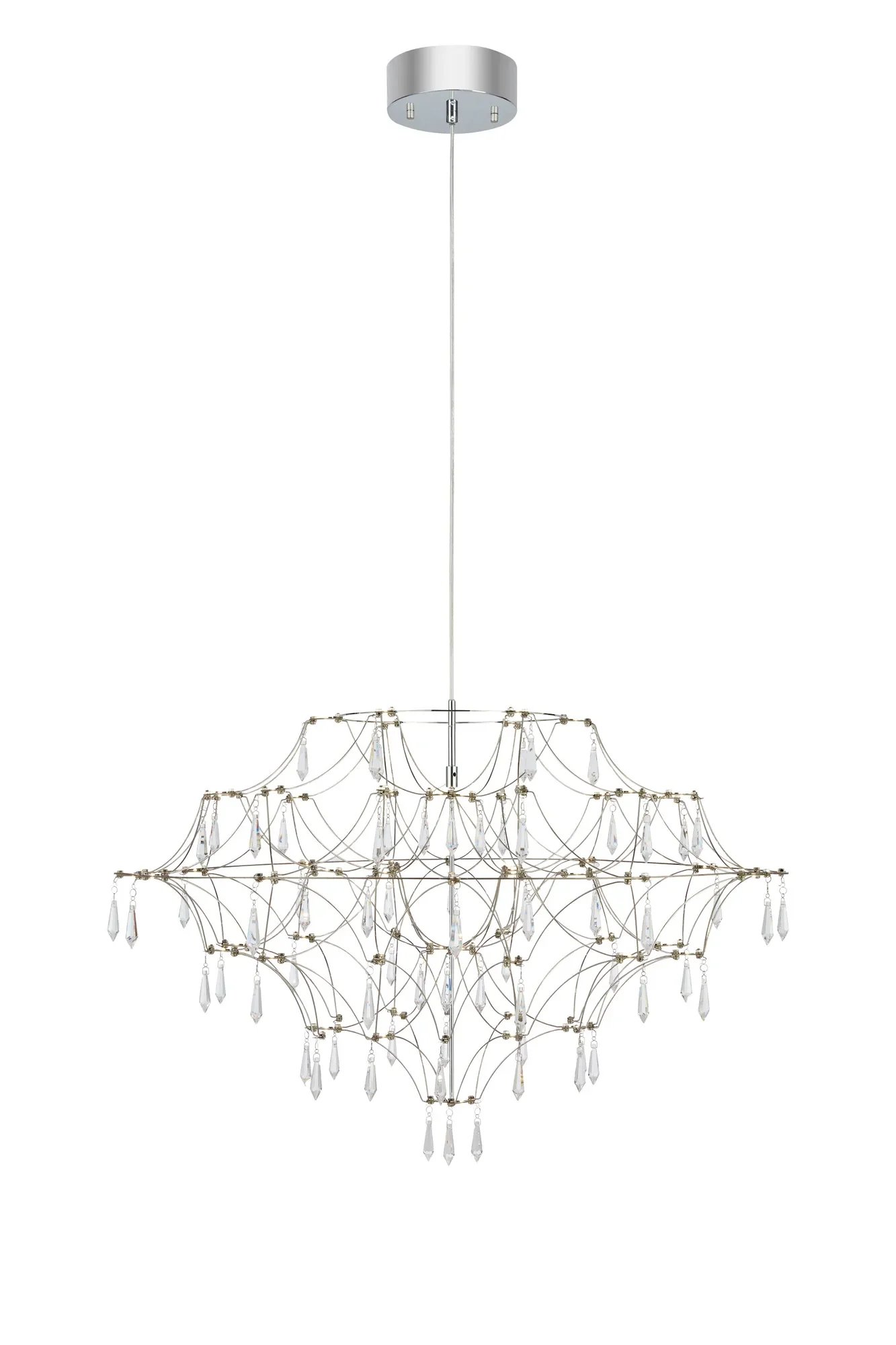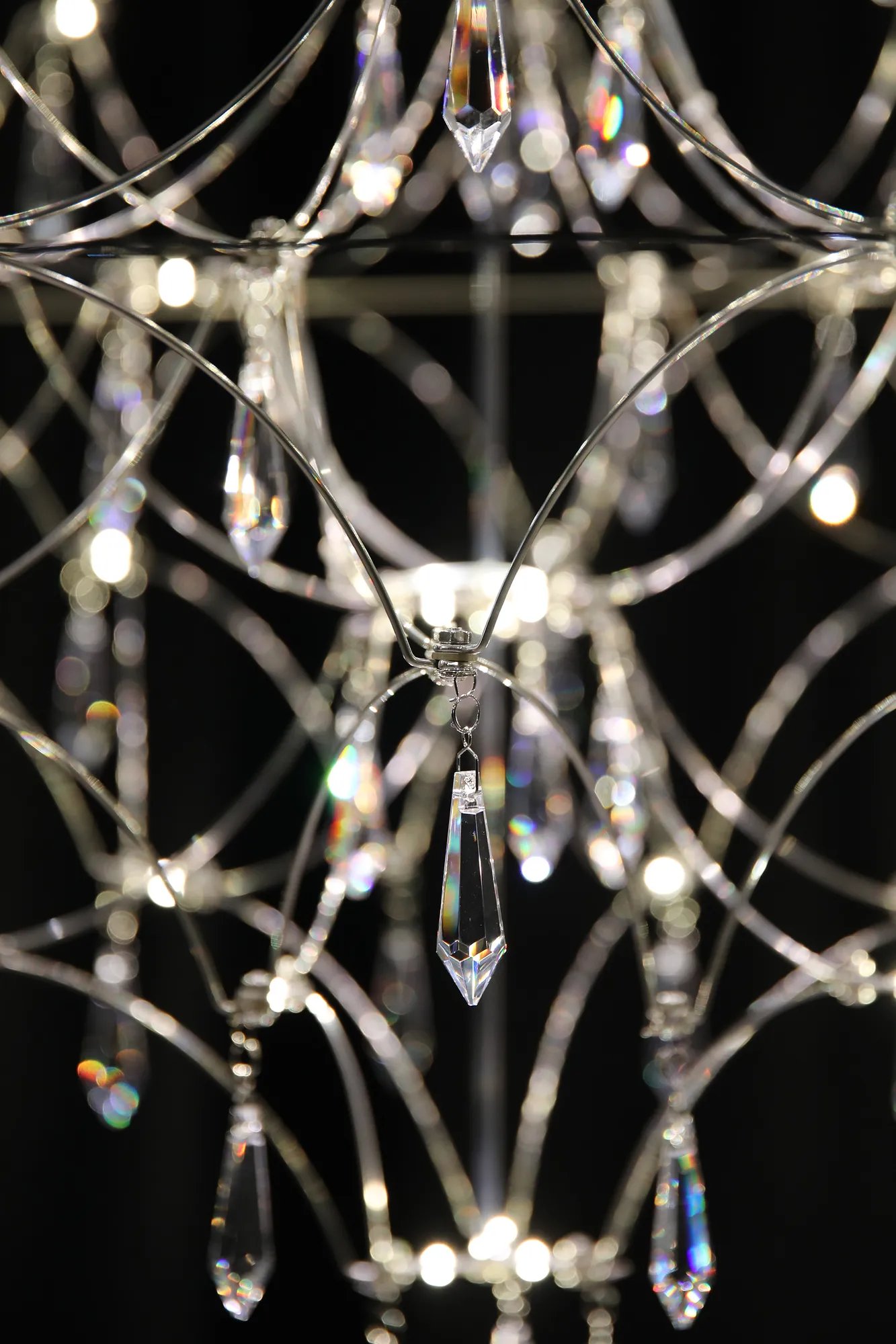 Kombinace precizně tvarované oceli a dokonale broušených krystalů vytváří nadčasový vzhled, který okouzlí milovníky minimalistického i luxusního stylu. Transparentní kabel o délce 3 metry umožňuje snadné umístění i ve vysokých prostorách. Díky své velikosti (Ø 82 cm, výška 53 cm) lustr ideálně vynikne nad jídelním stolem či v centrální části místnosti.
