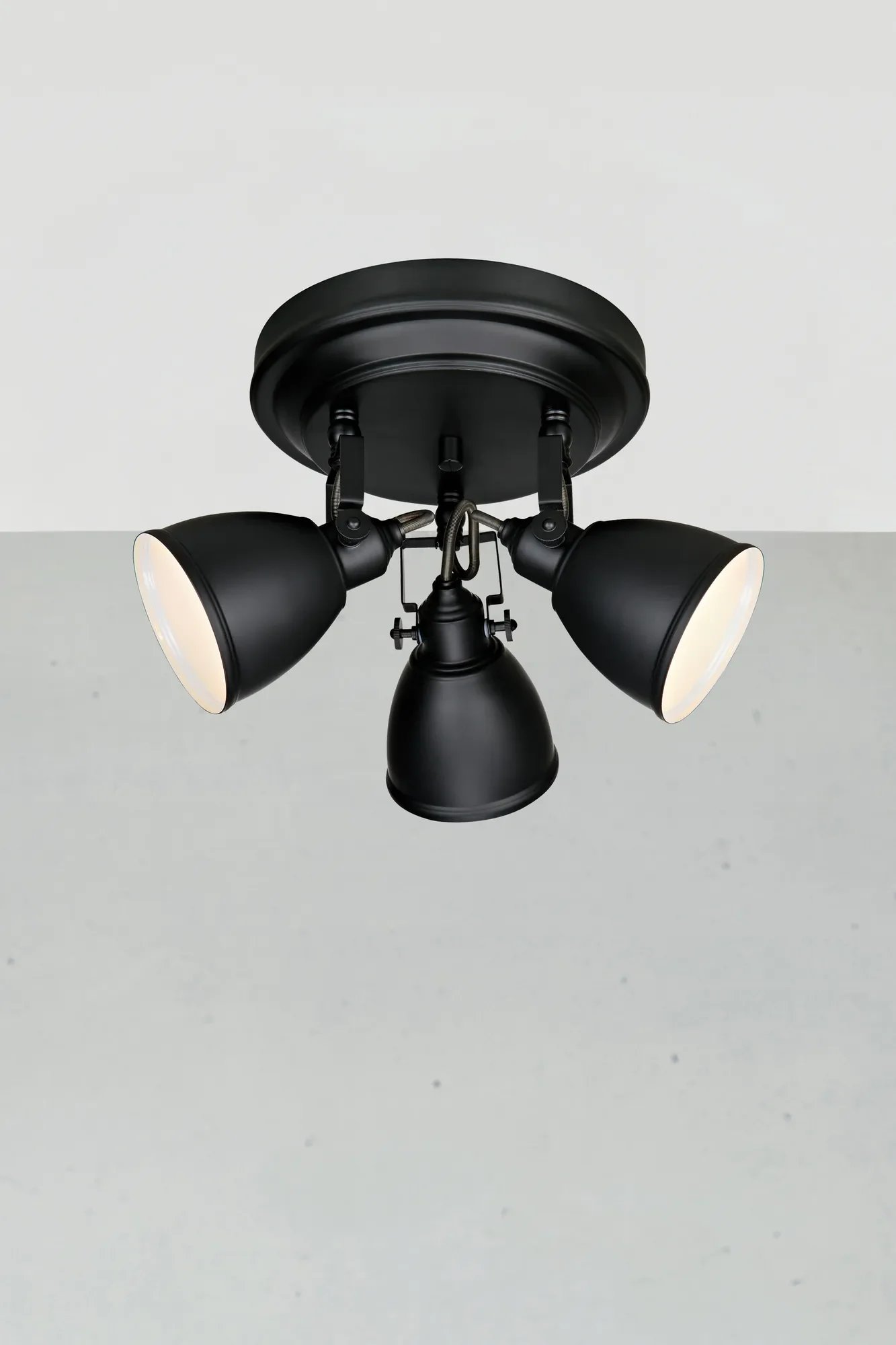 Stropní bodové svítidlo Markslöjd Fjällbacka v černé barvě vnese do vašeho interiéru jemně romantický, ale zároveň nadčasově klasický nádech. Jeho ladné tvary připomínají dobu tradičního evropského designu a zároveň umožňují dynamickou práci se světlem. Tři natočitelné spoty vyniknou v obývacím pokoji, ložnici, pracovně i nad jídelním stolem.