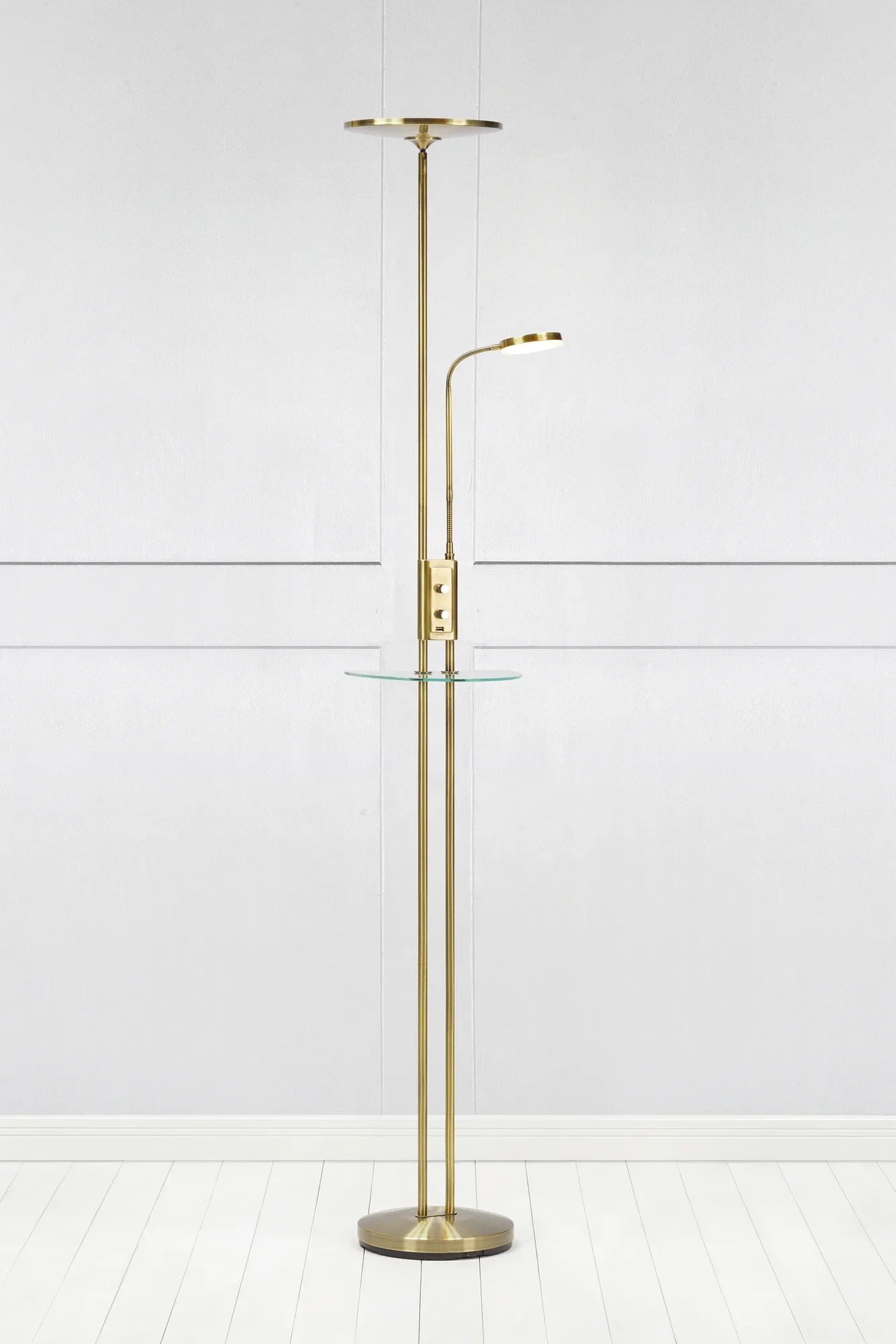 - Provedení: stojací lampa (uplight + čtecí světlo)