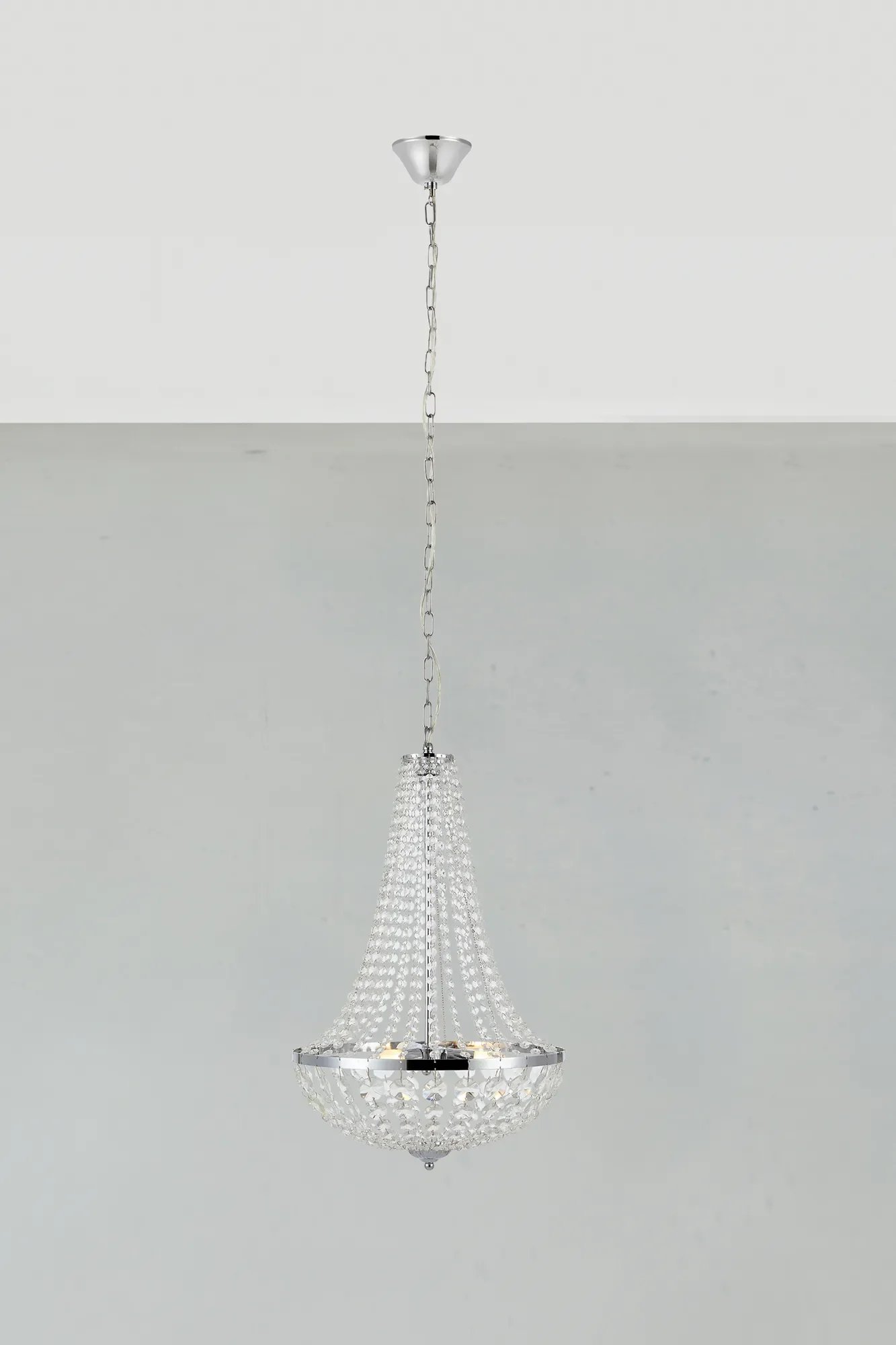 - Exkluzivní vzhled: Kombinace chromovaného železa a strojově broušených skleněných krystalů nabízí luxusní efekt rozptýleného světla.