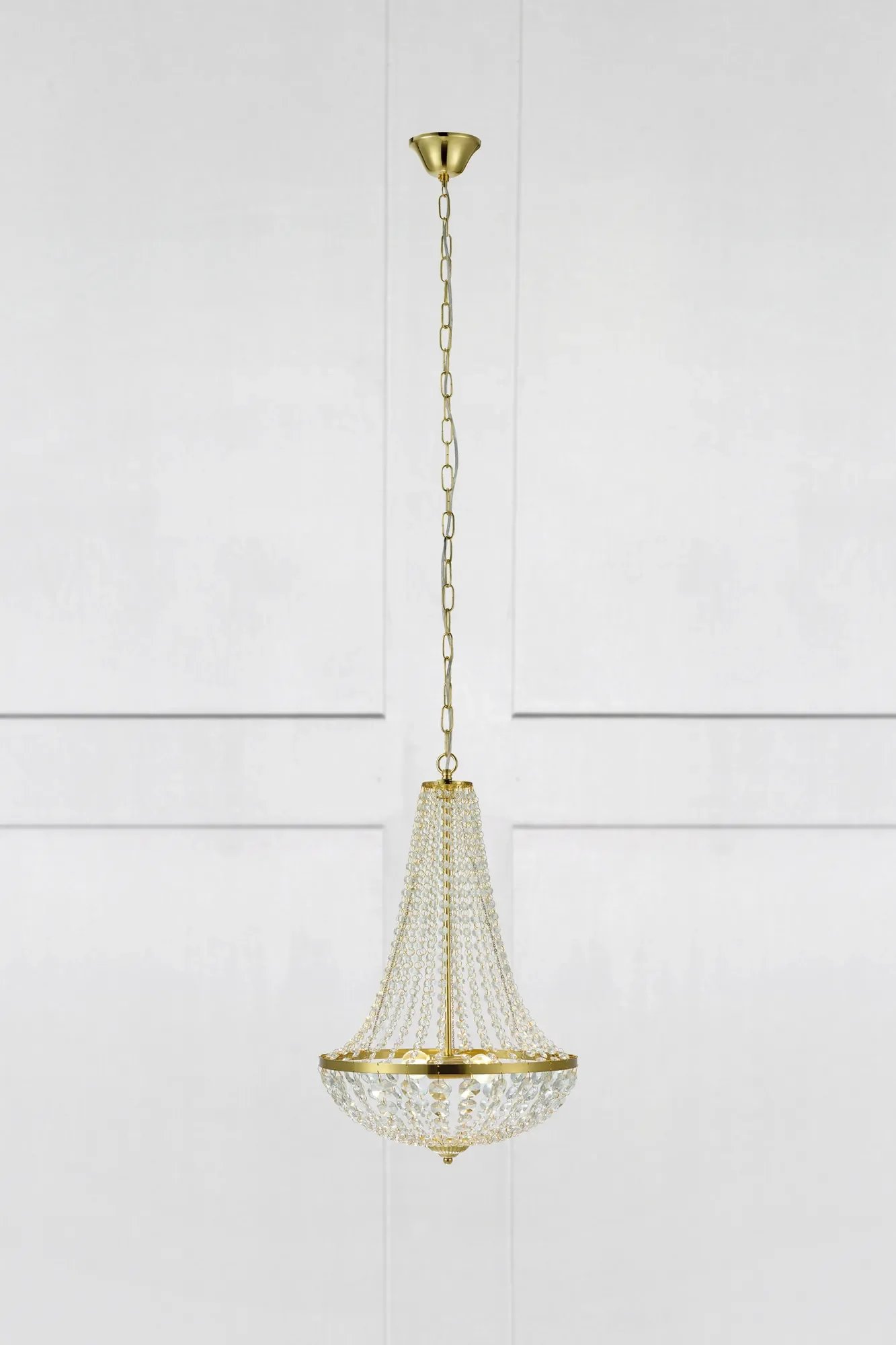 Závěsný lustr Gränsö je navržen v tradičním stylu, inspirovaném severskou elegancí. Nosná konstrukce z pevného železa v barvě broušené mosazi je doplněna množstvím čirých křišťálových hranolů, které nádherně lámou světlo a vytvářejí působivou světelnou hru. S průměrem 40 cm a výškou 55 cm se skvěle hodí nad jídelní stůl, ale i do menších salonů či ložnic.