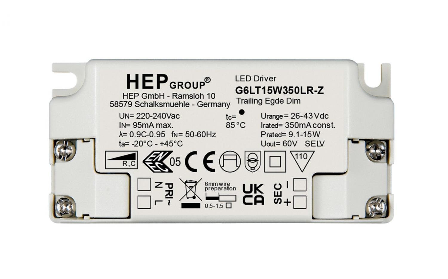 HEP napájení (CC, DC) stmívatelné, HEP, DIM, CC, G6LT15W350LR-Z, konstantní proud, fázové stmívání 350 mA IP20 26-43 V/DC 9,1-15W - LIGHT IMPRESSIONS