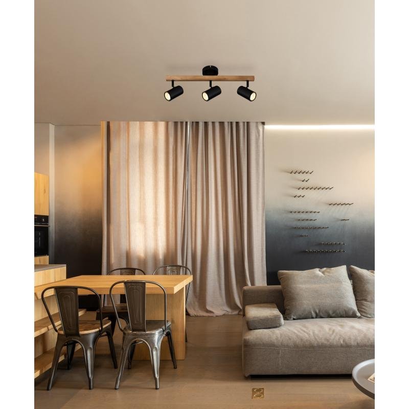Stropní svítidlo z rodiny Herti vás zaujme netradiční kombinací kovu a přírodního dřeva. Kloubové uchycení tří reflektorů zase umožní přesné nasměrování bodového osvětlení v místnosti. Objímka GU10 Vám nechává svobodnou volbu při výběru barvy světla a jasu až do max. výkonu 5W. Kvůli dlouhé životnosti a úspoře energie doporučujeme používat LED žárovky.