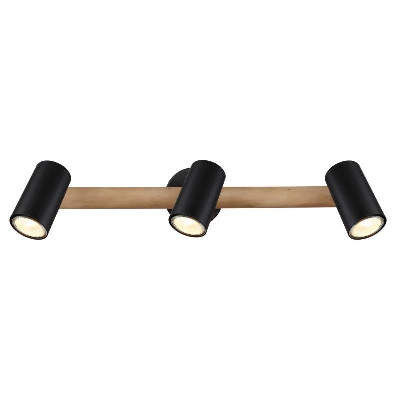 Nástěnné svítidlo, dřevo tmavě hnědé, kov černý, DxŠxV: 57x10x22cm, bez žárovek 3xGU10, max. LED 5W 230V